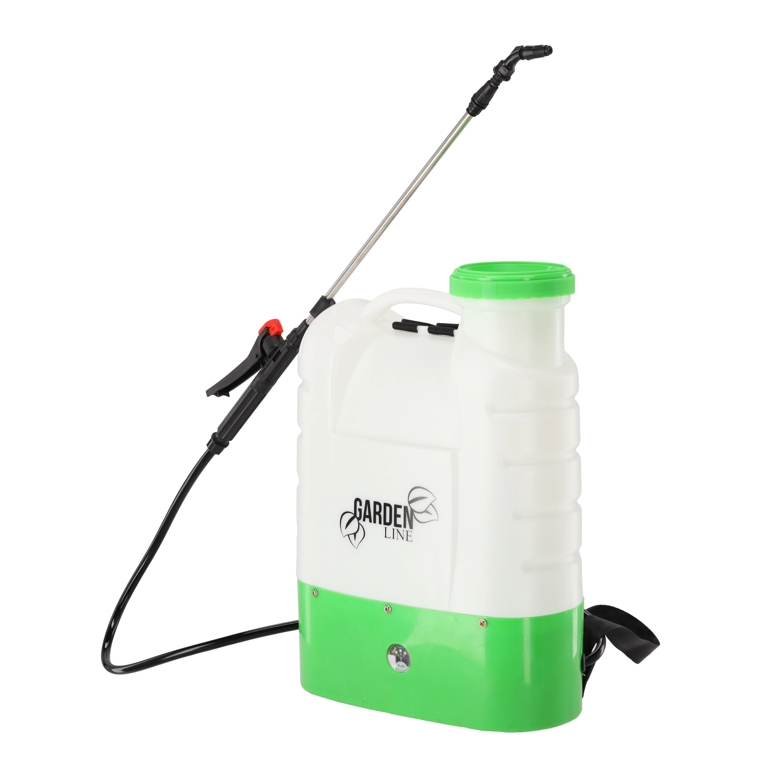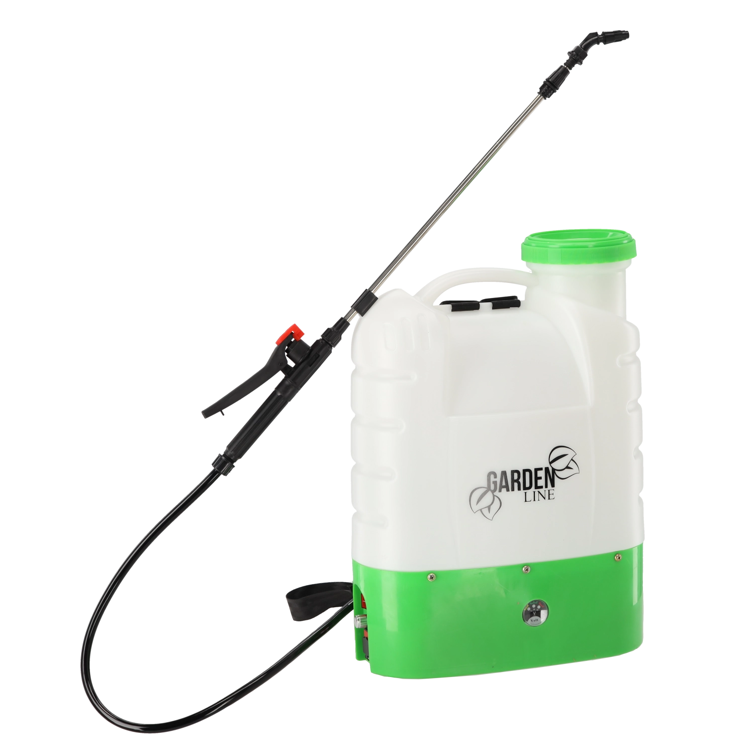 Akumulatorowy opryskiwacz ze zbiornikiem 16 l z wytrzymałego HDPE oszczędza czas i wysiłek podczas pielęgnacji roślin. Dzięki elektrycznej pompie i obrotowemu regulatorowi ciśnienia osiągniesz delikatną mgiełkę lub celowany strumień bez ciągłego ręcznego pompowania. Ergonomicznie ukształtowany zbiornik i regulowane pasy naramienne zapewniają wygodę także przy dłuższej pracy.