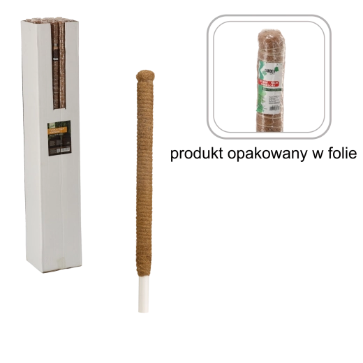 W donicy prezentuje się naturalnie i estetycznie, dzięki czemu nadaje się także do tworzenia kompozycji dekoracyjnych. Długość 120 cm i średnica części kokosowej 40 mm zapewniają wystarczającą powierzchnię do mocowania nawet bardziej masywnych pędów.