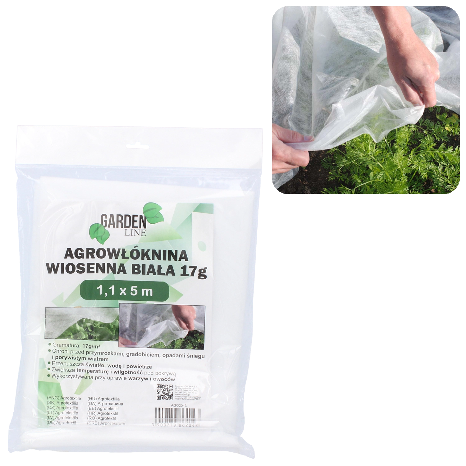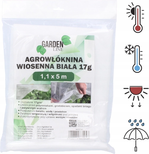 Praktyczna biała włóknina o wymiarach 1,1 × 5 m i gramaturze 17 g/m² to niezawodna wiosenna ochrona dla młodych roślin. Okrycie podnosi temperaturę przy powierzchni gleby, ogranicza parowanie i łagodzi porywisty wiatr, nie blokując przejścia światła i opadów.