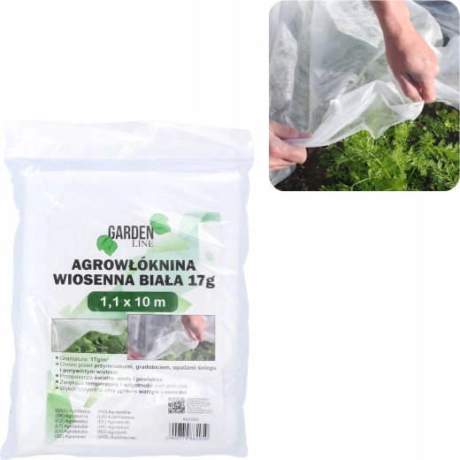 Lekka wiosenna agrowłóknina 1,1 × 10 m chroni młode rośliny przed wiosennymi przymrozkami, wiatrem i szkodnikami, a jednocześnie przepuszcza światło, powietrze i wodę dla zdrowego wzrostu. Dzięki gramaturze 17 g/m² i stabilizacji UV tworzy korzystny mikroklimat i przyspiesza start sezonu.