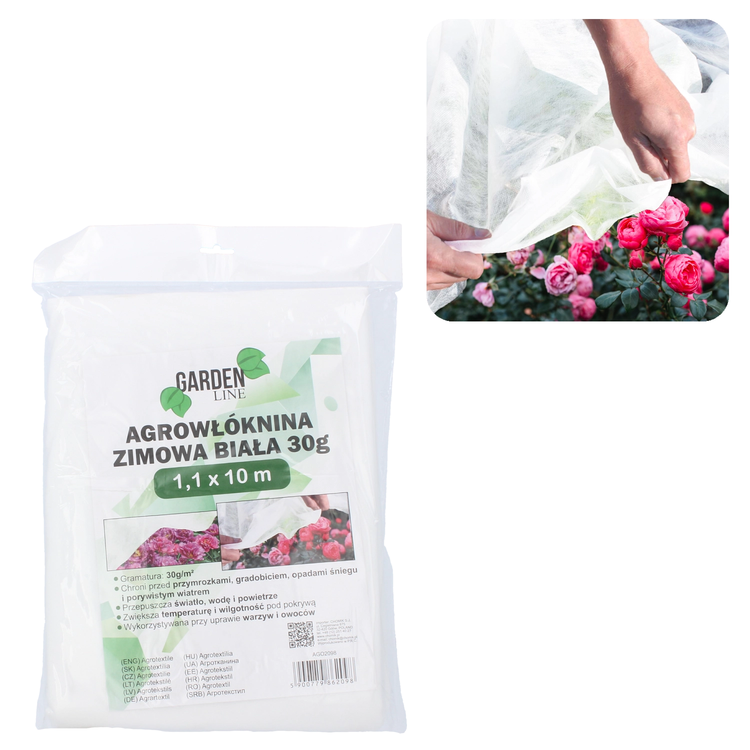 Zastosowanie: Idealna do zabezpieczania na zimę krzewów i młodych drzewek, ochrony bylin, ogrodów skalnych oraz wrażliwych roślin w okresie zimy i wczesnej wiosny. Wymiar 1,1 × 10 m umożliwia łatwe dopasowanie i szybką instalację na rabatach oraz pojedynczych roślinach.