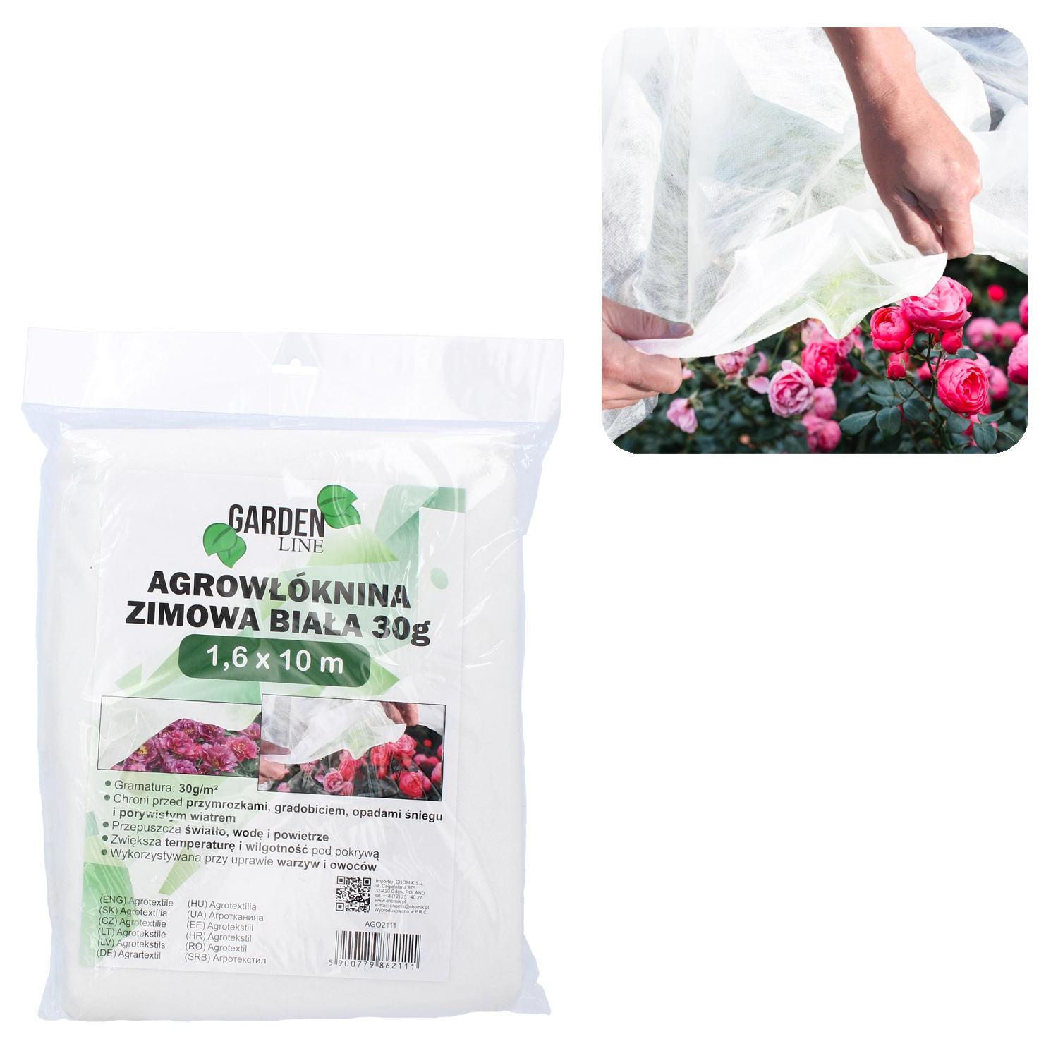 Biała agroagrotkanina zimowa i wczesnowiosenna 1,6 × 10 m, 30 g/m²