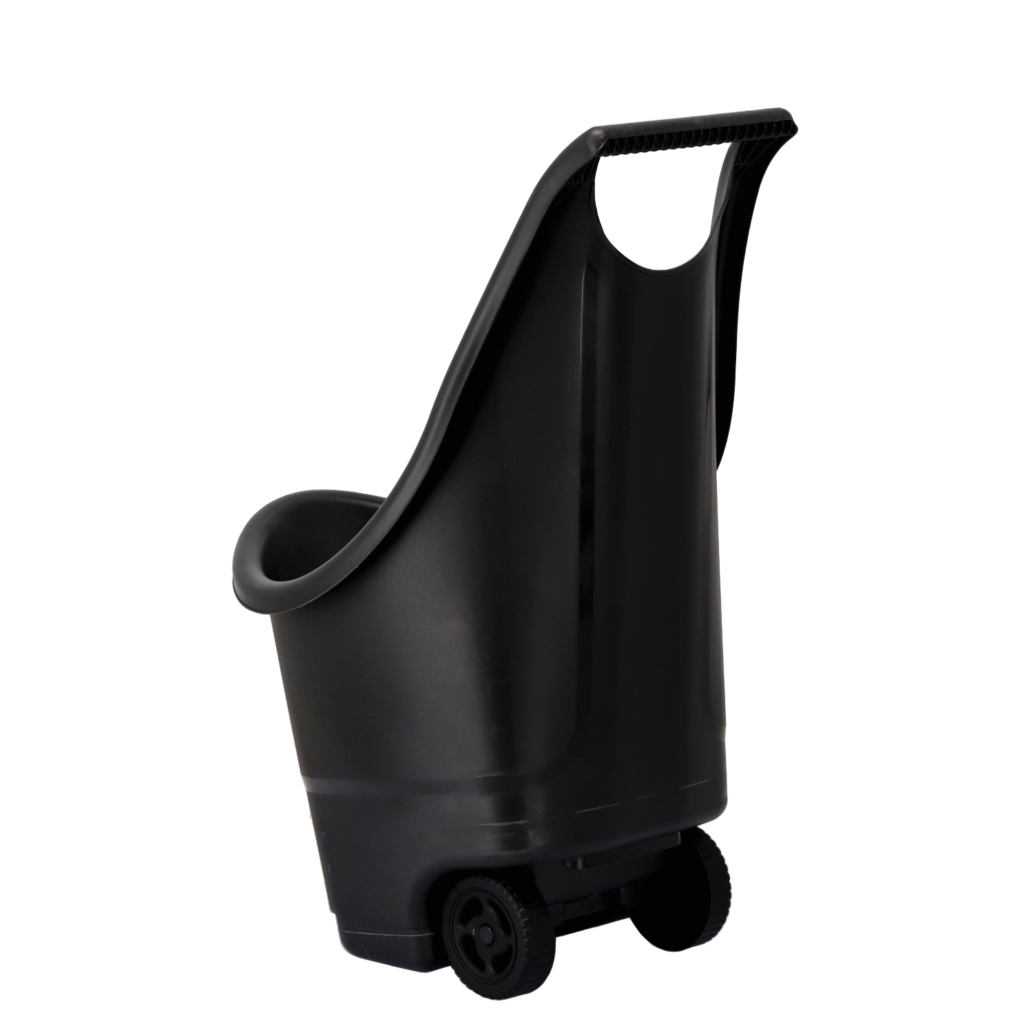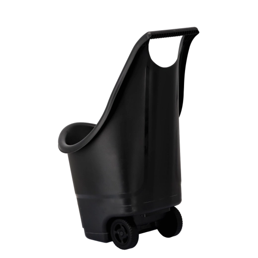 - Łatwa obsługa: dwa koła i wysoki uchwyt do ciągnięcia oraz przechylania zawartości