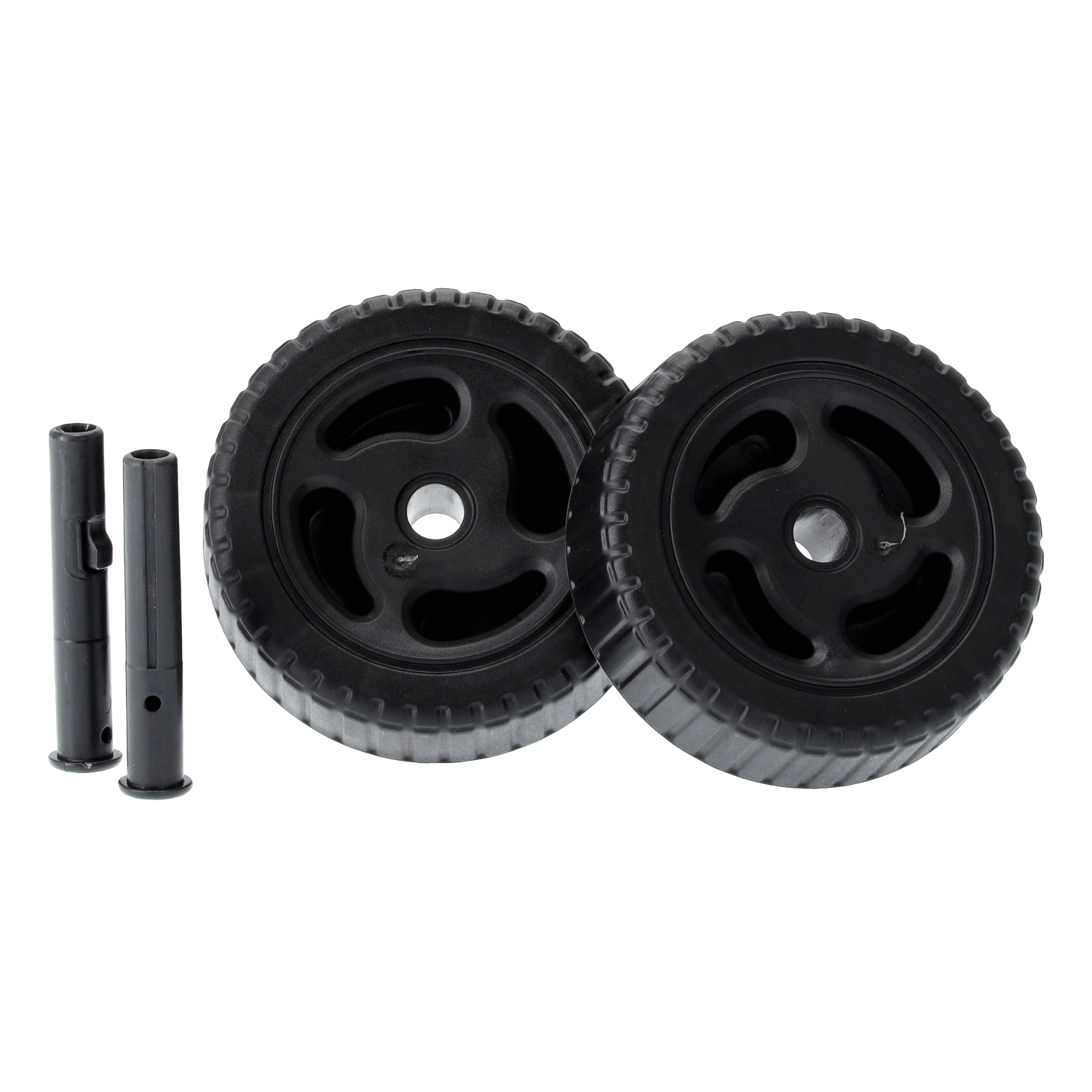 Dwa solidne plastikowe koła i wyważony środek ciężkości umożliwiają płynne poruszanie się po trawniku, żwirze i kostce bez zbędnego wysiłku.