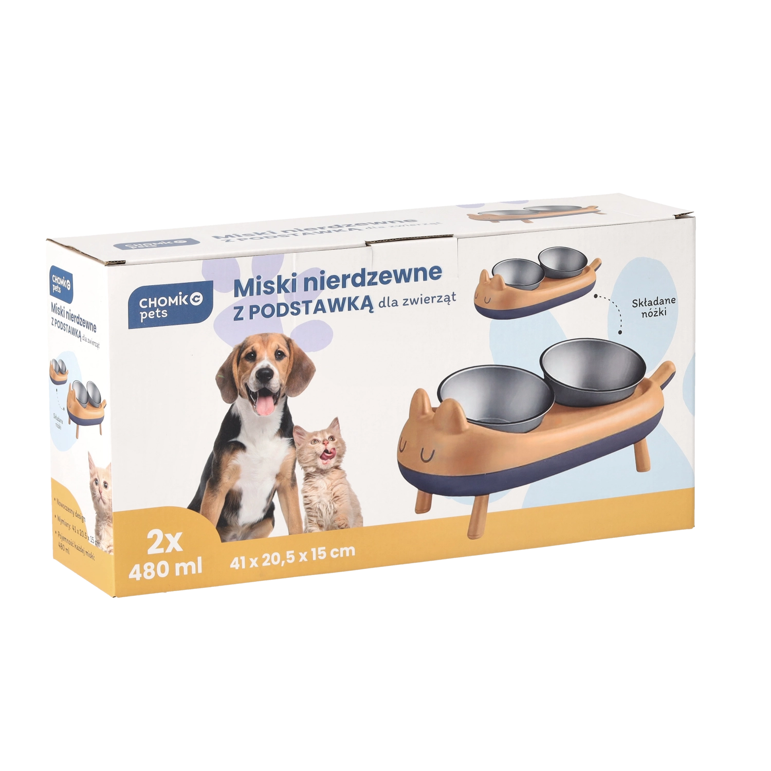 Podwyższona konstrukcja, stabilna podstawa, wyjmowane miski, łatwe czyszczenie