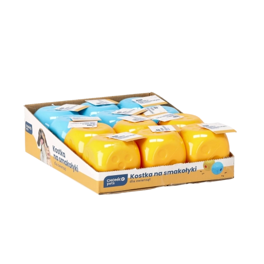 Sprytna zabawka, która bawi i stymuluje. Interaktywna kostka na smakołyki o wymiarach 6,5 × 6,5 × 6,5 cm z wytrzymałego plastiku stopniowo uwalnia nagrody podczas turlania i zabawy. Wspiera stymulację mentalną, wolniejsze jedzenie oraz naturalny instynkt łowiecki. Łatwa w czyszczeniu i odpowiednia dla małych i średnich psów oraz kotów. Kolor wysyłany losowo.