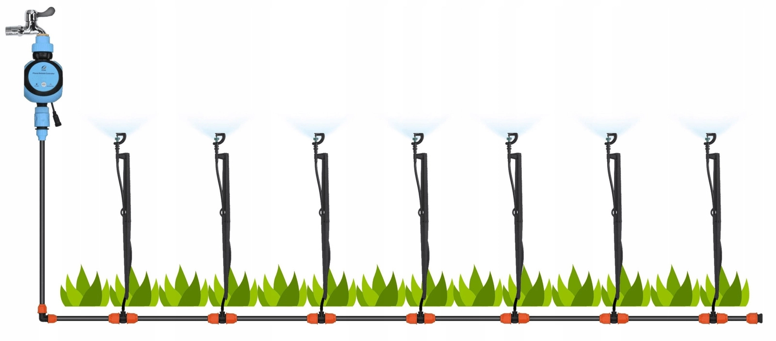 Kompletny zestaw nawadniający do ogrodu z 10 obrotowymi mikrozraszaczami zapewnia ciągłe i równomierne podlewanie rabat, szklarni oraz wiszących donic. Prosty montaż do standardowego ogrodowego kranu, możliwość dowolnej konfiguracji trasy i komponentów, wszystko przejrzyście zapakowane w pudełku.