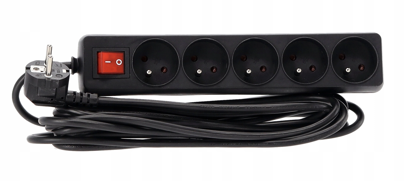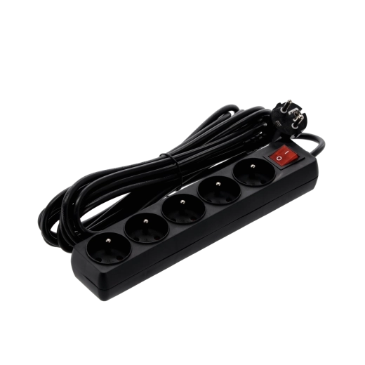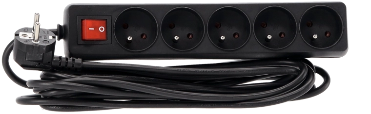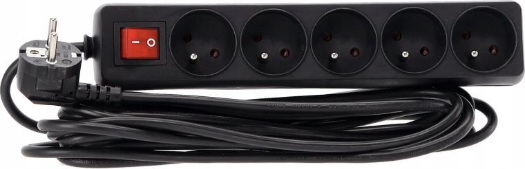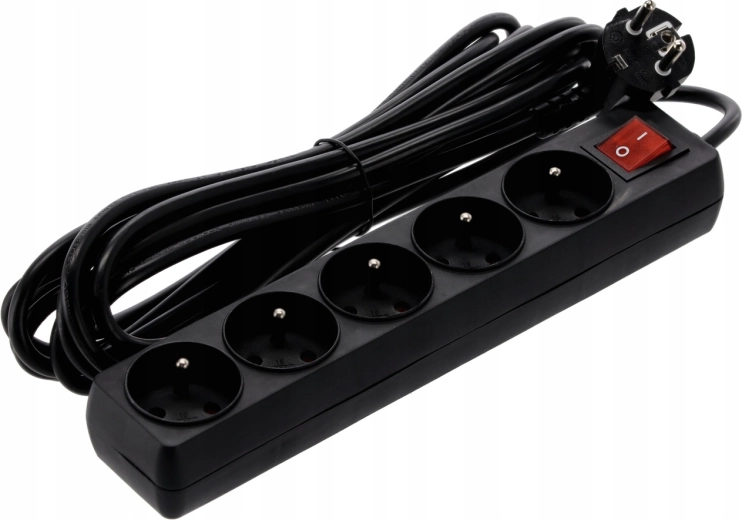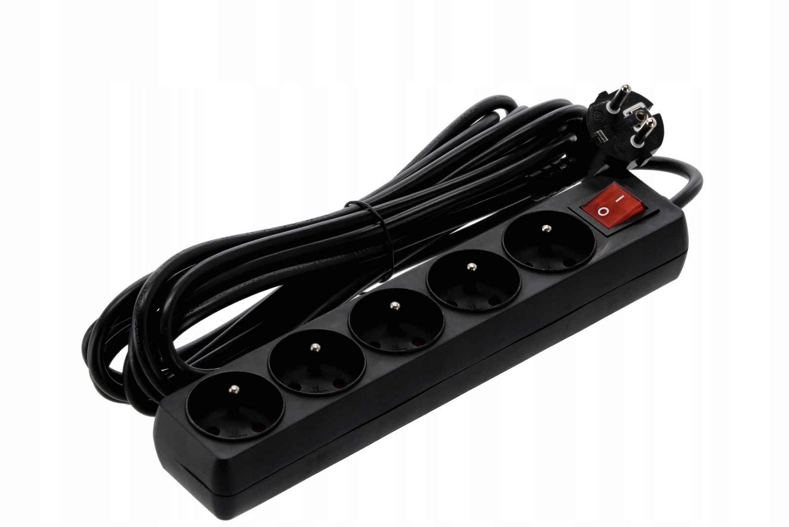Ta listwa zasilająca oferuje pięć uziemionych gniazd do jednoczesnego podłączenia wielu urządzeń oraz główny wyłącznik z podświetleniem do szybkiego odłączenia od sieci. Długi 5‑metrowy miedziany przewód 3×1,0 mm² zapewnia elastyczność ustawienia bez potrzeby dodatkowych przedłużeń.