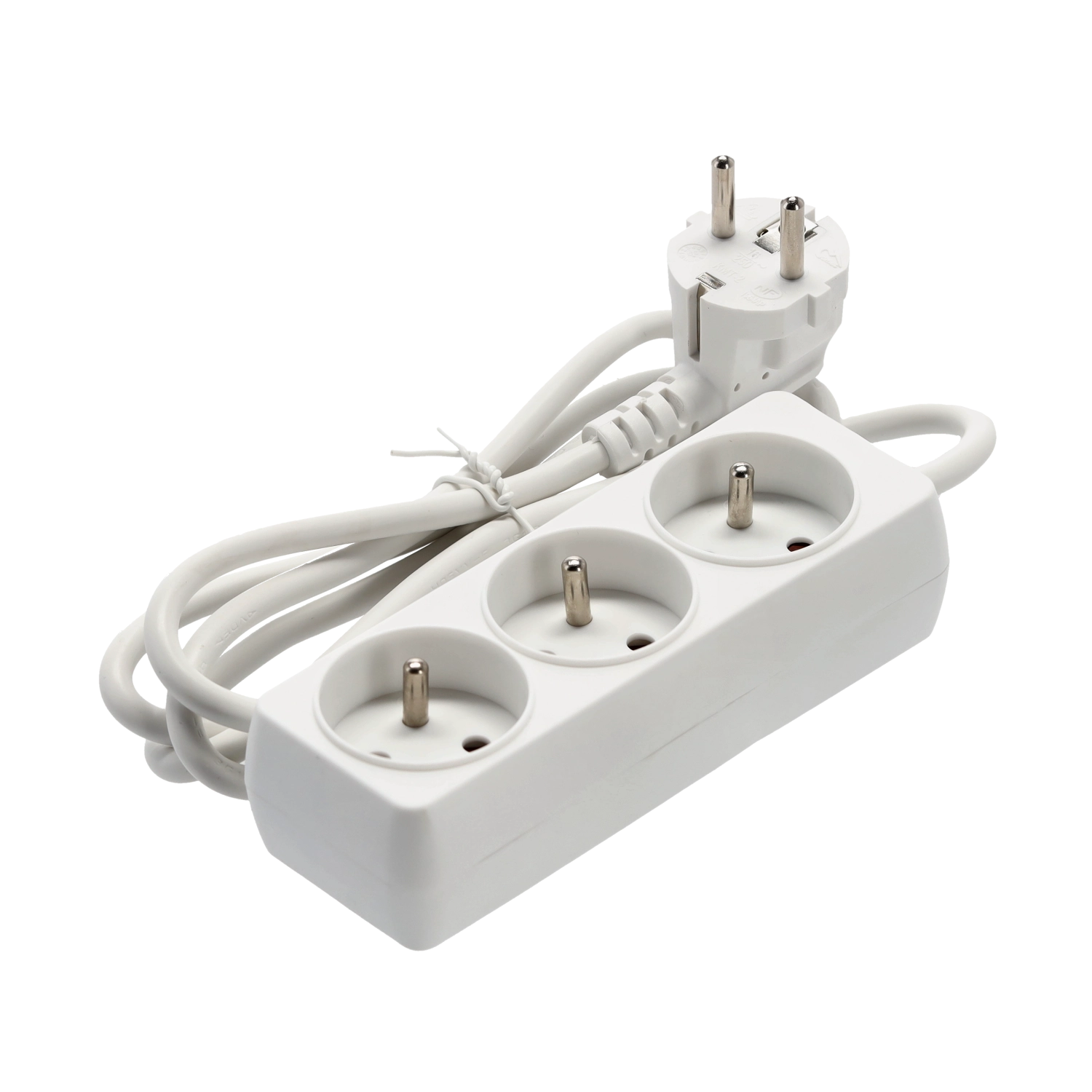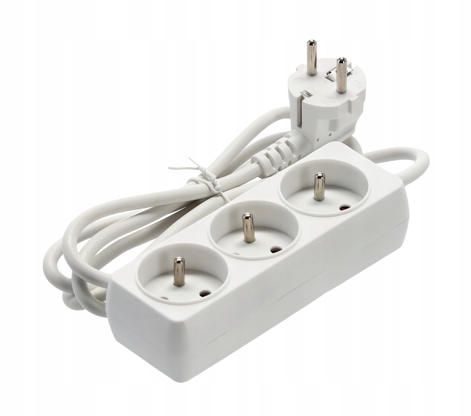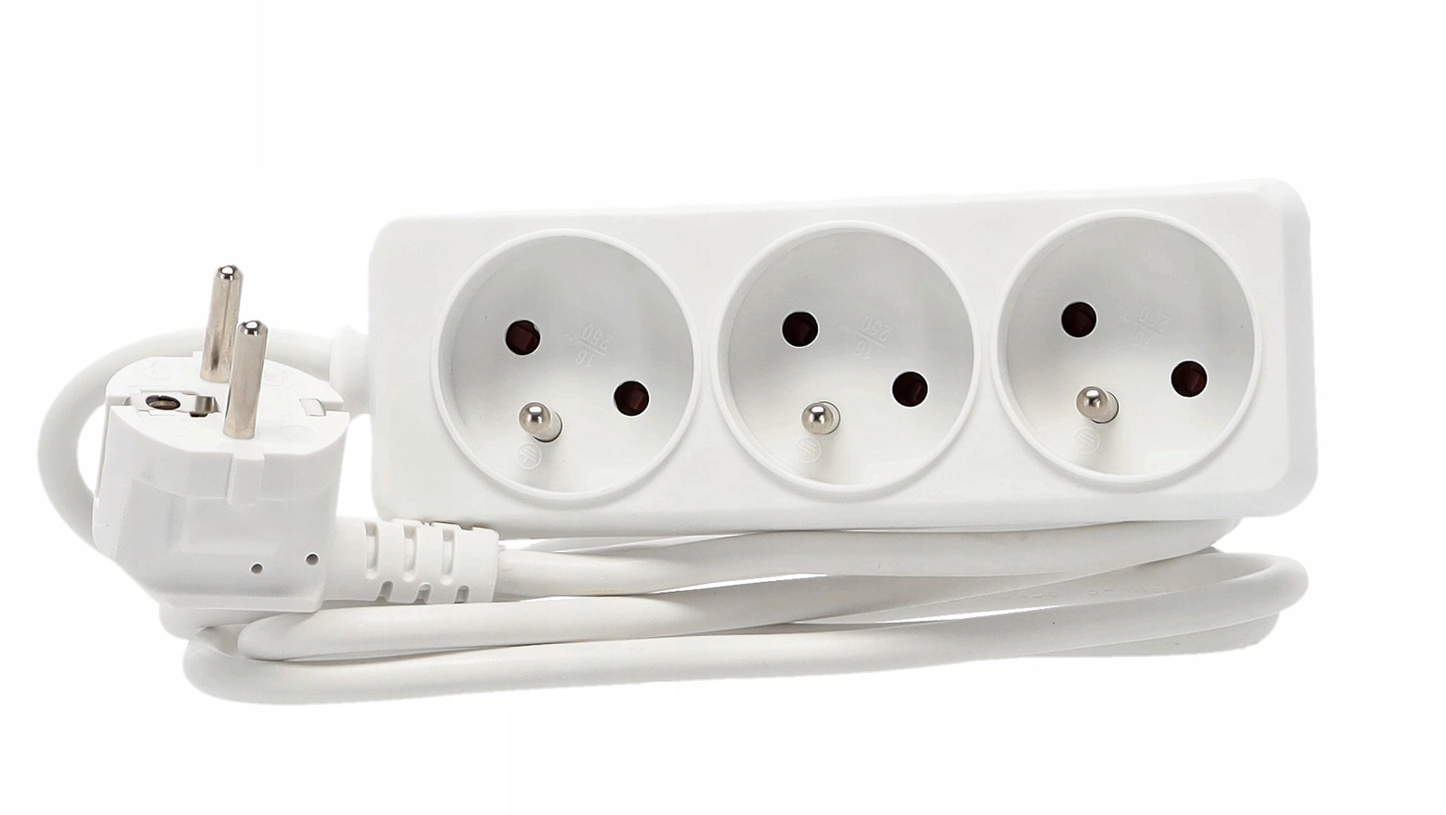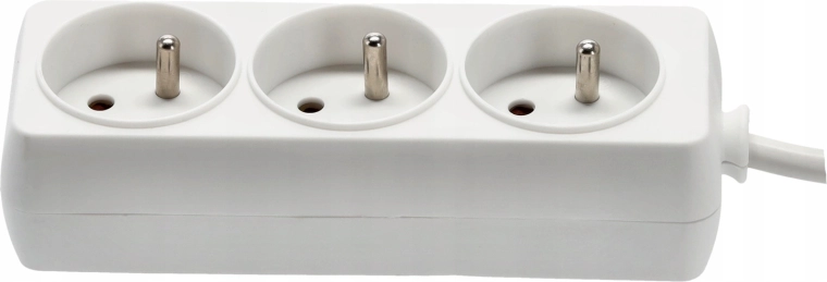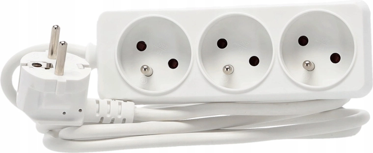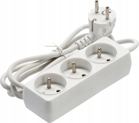 Praktyczna biała listwa przedłużająca z 3 uziemionymi gniazdami i kablem 1,5 m do wygodnego zasilania kilku urządzeń jednocześnie. Wytrzymałe wykonanie z wysokiej jakości plastiku, miedziany przewód 3×1,0 mm² dla niezawodnej wydajności i maksymalnego obciążenia do 3680 W przy 250 V/16 A. Odpowiednia do domu i biura.