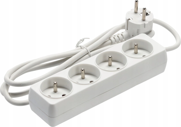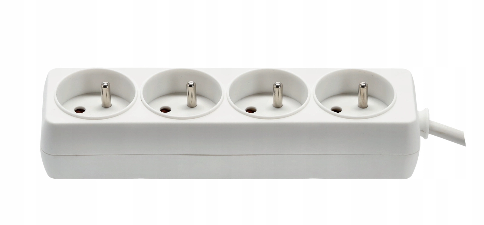 Cztery uziemione gniazda w jednej listwie umożliwiają bezpieczne podłączenie i zasilanie wielu sprzętów jednocześnie – idealne do biura i domu.