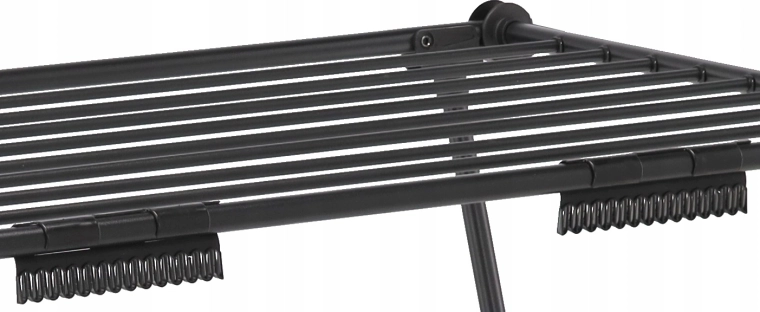 Szerokość suszarki można płynnie dopasować do bieżących potrzeb, dzięki czemu z łatwością pomieści większe pranie i delikatne tkaniny. Po wysuszeniu łatwo składa się na płasko i można ją schować do schowka lub za szafę.