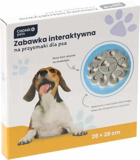 Interaktywna zabawka dla psa o wymiarach 28 × 28 cm zapewnia zabawę, stymulację umysłową oraz lekką aktywność fizyczną. Dzięki ruchomym elementom pies szuka ukrytych smakołyków, trenuje skupienie i spowalnia łapczywe jedzenie – idealna dla sprytnych psów i początkujących.