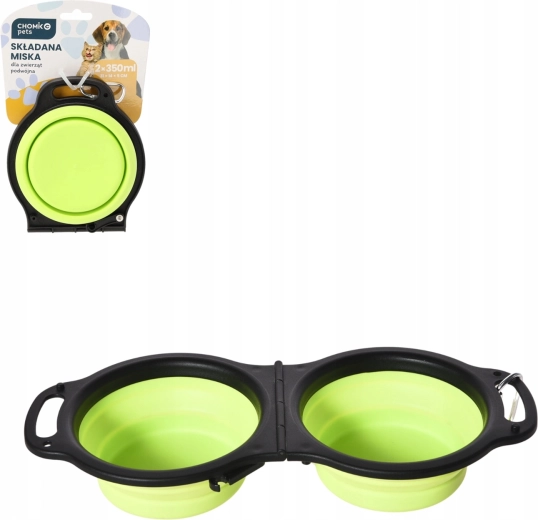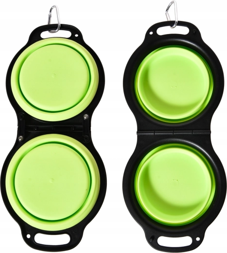 Praktyczna, składana miska z dwiema komorami o pojemności 2 × 350 ml jest idealna w podróży, na wycieczki i codzienne spacery. Dzięki kompaktowym wymiarom, lekkiej konstrukcji i karabińczykowi łatwo przypniesz ją do plecaka lub smyczy. Umożliwia jednoczesne podawanie wody i karmy, jest łatwa w czyszczeniu i wykonana z bezpiecznych, nietoksycznych materiałów.