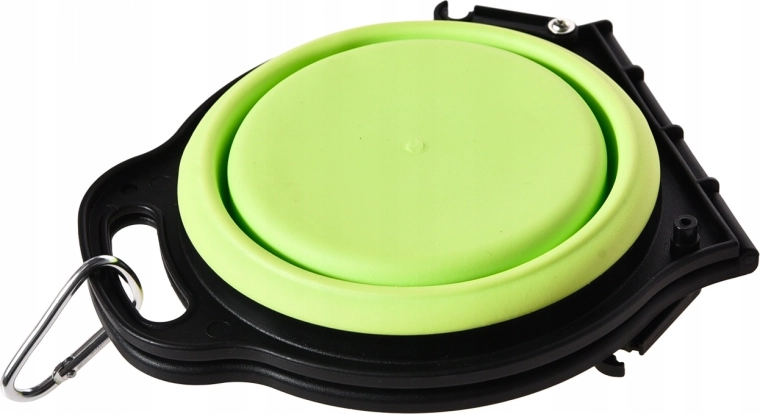 Po złożeniu miska ma wysokość tylko 4 cm, więc nie zajmuje miejsca w plecaku ani kieszeni. W zestawie znajduje się wytrzymały karabińczyk do przypięcia do plecaka, paska lub smyczy. Świetny wybór w podróż, na wędrówki, pikniki i do samochodu.