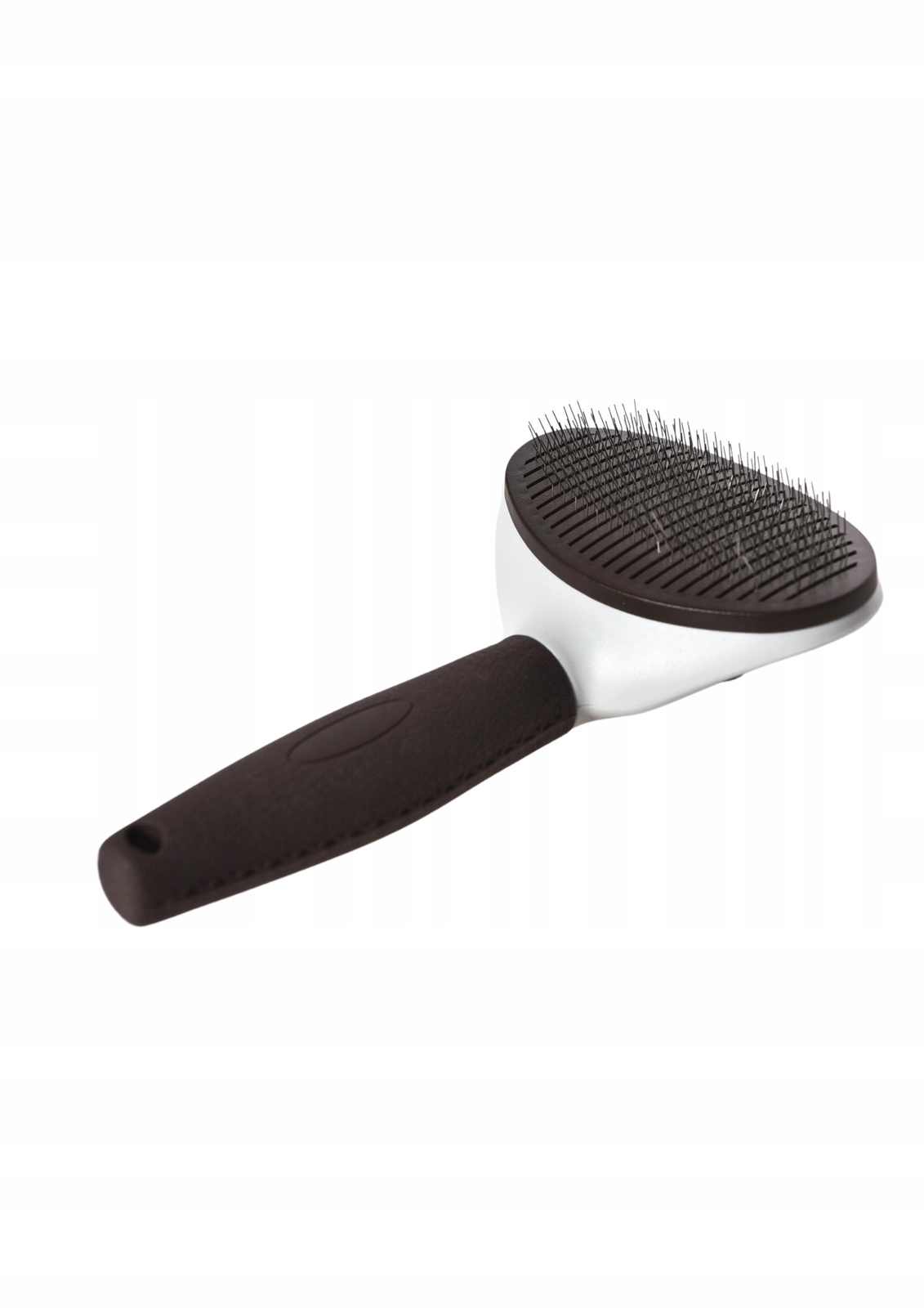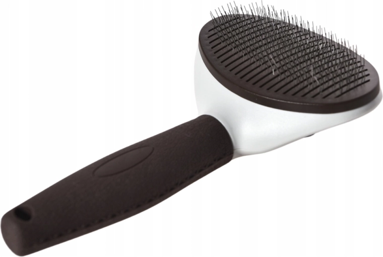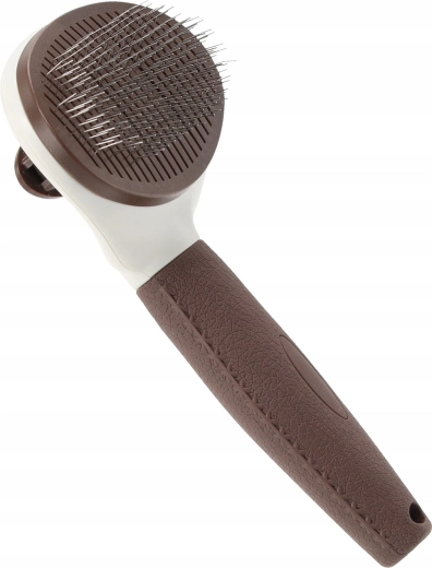 Praktyczna, samooczyszczająca szczotka dla psów i kotów ułatwia codzienną pielęgnację sierści. Jednym naciśnięciem przycisku uwalniasz nagromadzoną sierść, dzięki czemu czyszczenie jest szybkie i higieniczne. Miękkie druciane włosie z plastikowymi końcówkami jest delikatne dla skóry, a jednocześnie skutecznie wychwytuje luźne włosy i delikatnie masuje. Ergonomiczny, antypoślizgowy uchwyt zapewnia wygodę nawet podczas dłuższego czesania i pomaga ograniczyć linienie oraz poprawić wygląd sierści.