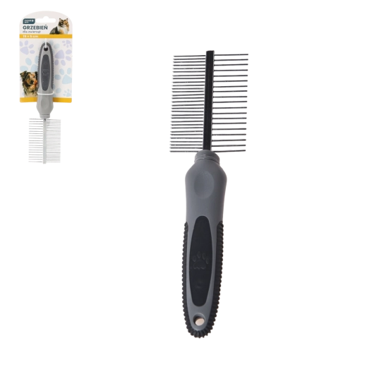 Utrzymuj sierść swojego pupila w doskonałej kondycji dzięki dwustronnemu grzebieniowi, który łączy dwa różne typy zębów dla delikatnej, a jednocześnie dokładnej pielęgnacji. Jedna strona jest idealna do delikatnego rozczesywania i wygładzania wierzchniej warstwy sierści, druga pomaga usuwać skołtunione miejsca i luźne włosy.