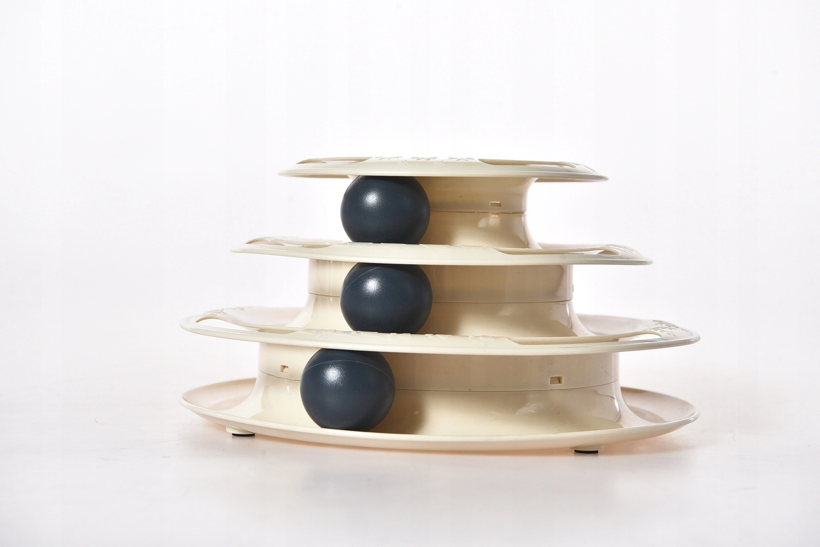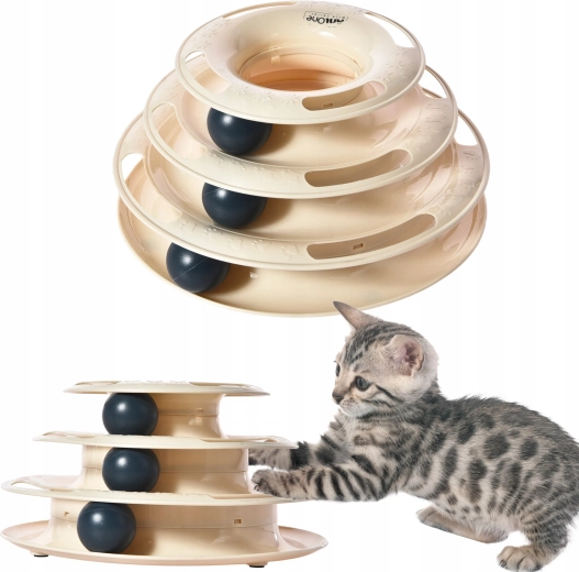 Interaktywna zabawka dla kotów z trójpoziomową konstrukcją i lekkimi piłeczkami wspiera naturalne instynkty łowieckie, aktywność fizyczną oraz stymulację umysłową. Stabilne wykonanie z wytrzymałego plastiku oraz antypoślizgowe nóżki zapewniają bezpieczną i długotrwałą zabawę dla kotów w każdym wieku.