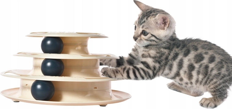 Podaruj swojej kocie sprytną rozrywkę, która zajmie ją na długie godziny. Trójpoziomowa wieża z piłeczkami obraca się przy każdym trąceniu łapką i motywuje kota do dalszego „polowania”. Dzięki płynnemu ruchowi piłeczek po otwartych torach zabawka stymuluje naturalne instynkty i wspiera codzienną aktywność.