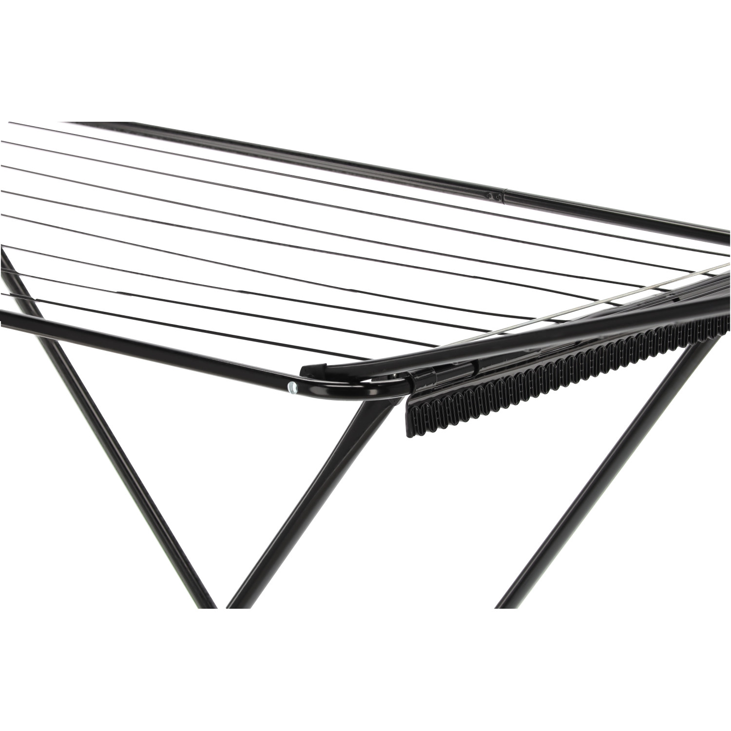Rozkładane skrzydła i wiele równoległych prętów zapewniają przestrzeń do suszenia prania całej rodziny bez potrzeby suszarki bębnowej.