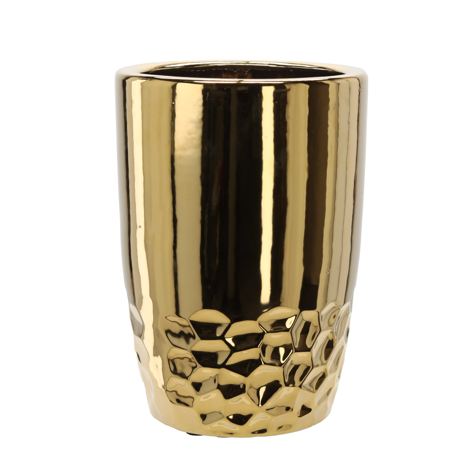 Elegancka ceramiczna osłona na donicę w luksusowym, złotym odcieniu doda Twojemu wnętrzu stylu i charakteru. Wysokiej jakości ceramika jest odporna i stabilna, a wyrazisty kolor pięknie komponuje się z zielenią roślin, tworząc dekoracyjny akcent dominujący zarówno w nowoczesnych, jak i klasycznych przestrzeniach.