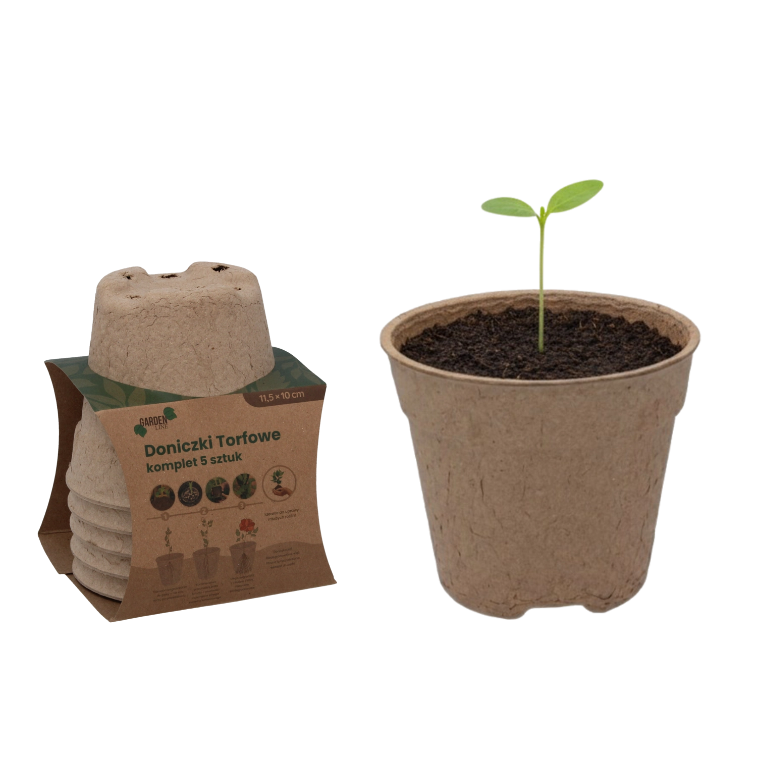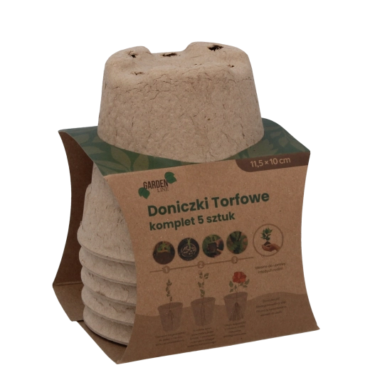 Ekologiczny zestaw pięciu torfowych doniczek o wymiarach 11,5 × 10 cm jest idealny do rozsady warzyw, ziół i kwiatów. Doniczki są w 100% biodegradowalne, wspierają zdrowy wzrost korzeni i umożliwiają sadzanie bezpośrednio do gruntu bez przesadzania – bez stresu dla roślin i bez zbędnych odpadów.