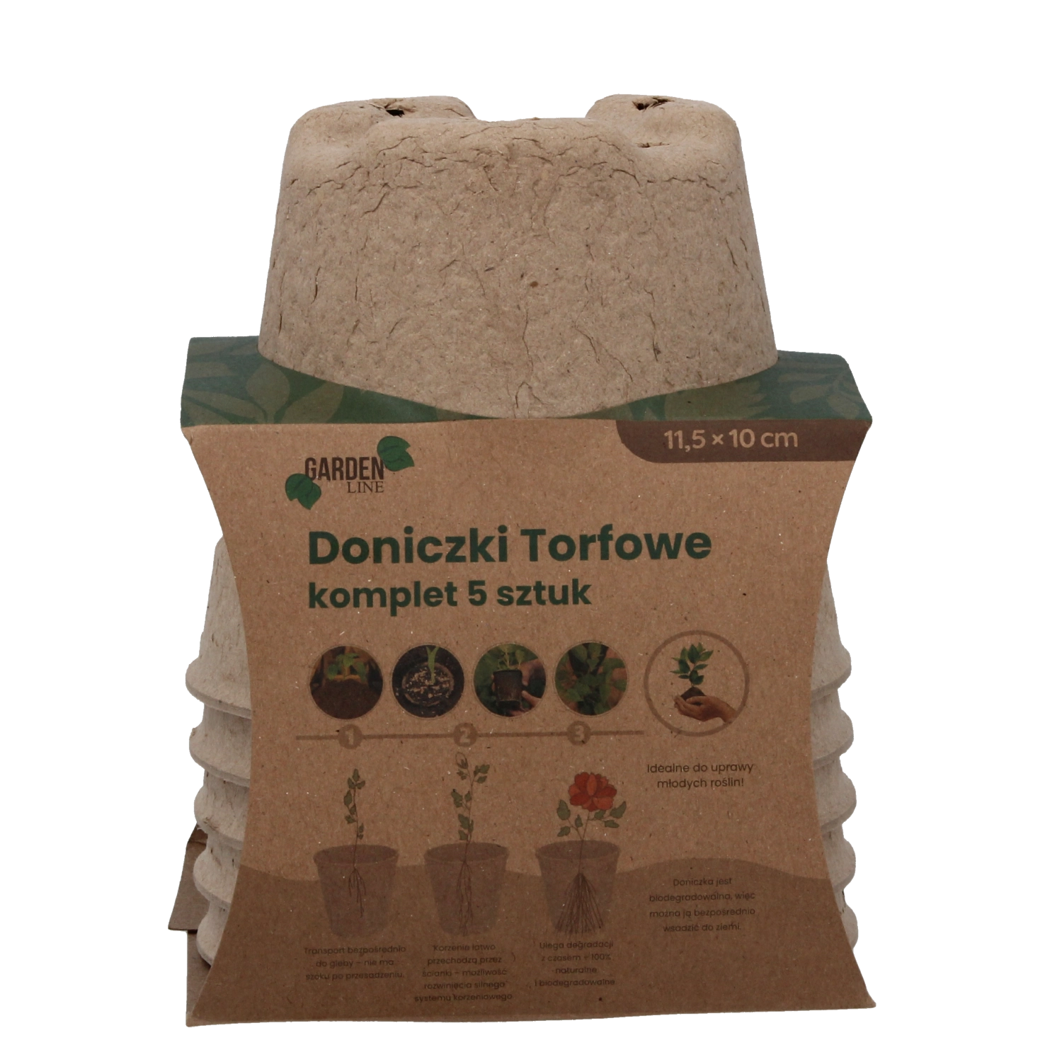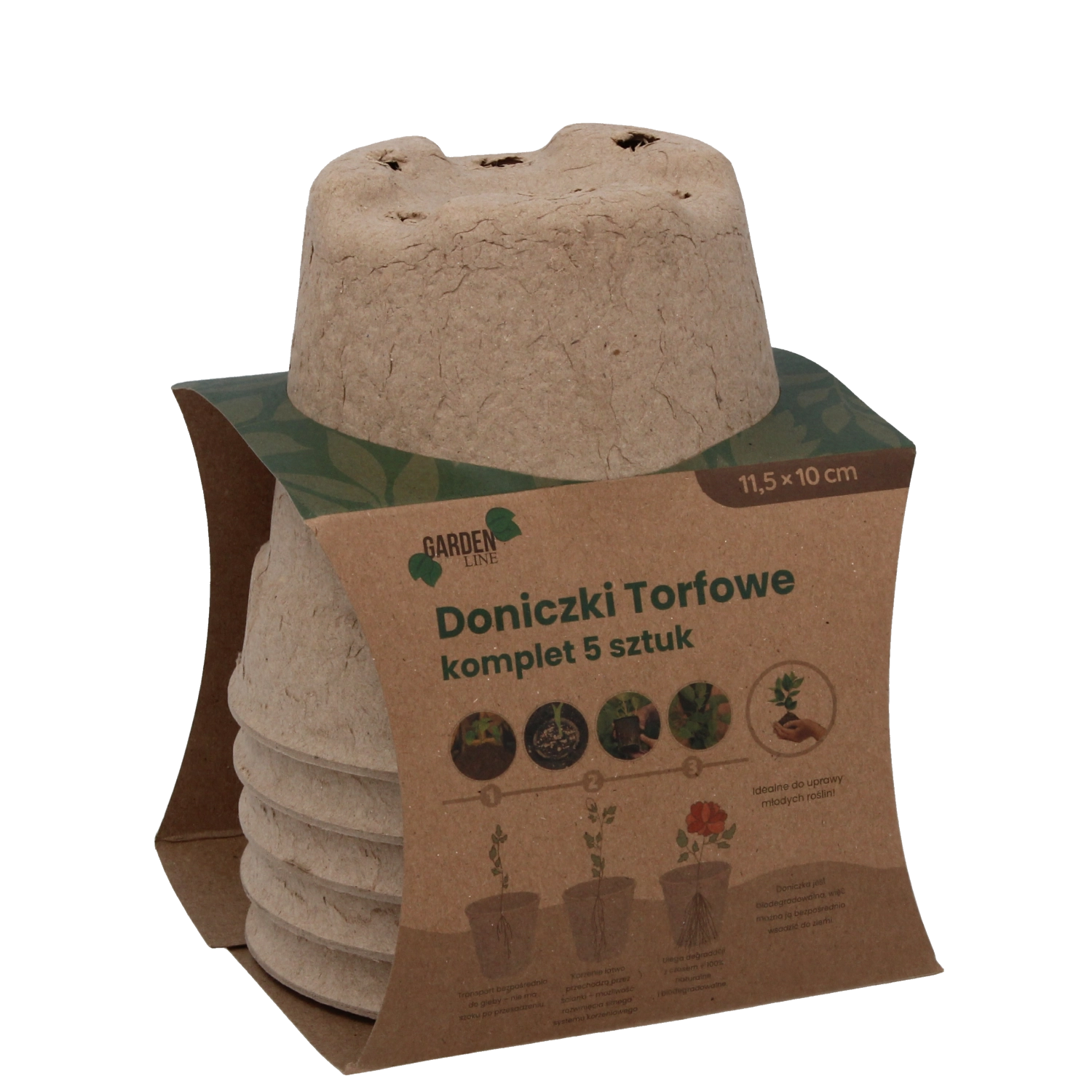 Zestaw 5 torfowych doniczek 11,5 × 10 cm