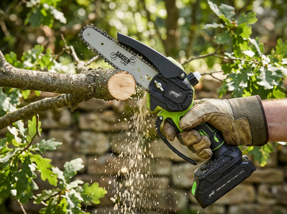 Uczyń przycinanie drzew i krzewów szybkim oraz bezpiecznym zadaniem. Ta bezprzewodowa mini pilarka łańcuchowa 21 V oferuje kompaktowe wymiary, pewny chwyt i wysoką efektywność cięcia. Prowadnica 15 cm jest idealna do większości prac ogrodowych – od skracania gałęzi po cięcia formujące.