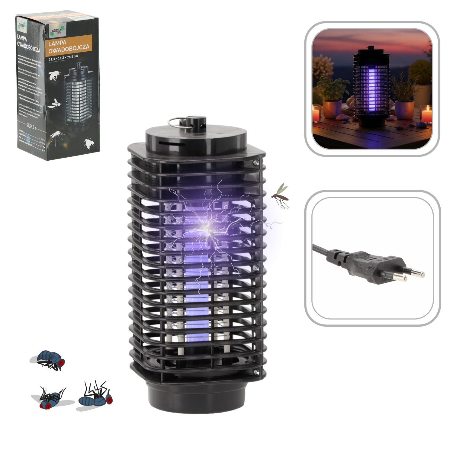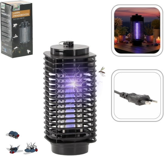 Elegancka i skuteczna elektryczna łapka na owady do wnętrz niezawodnie chroni przed komarami i muchami. Światło UV/LED przyciąga owady, które są następnie unieszkodliwiane przez wewnętrzną elektryczną siatkę. Urządzenie jest energooszczędne, ciche i łatwe w utrzymaniu – wystarczy regularnie usuwać złapane owady i umieścić lampę na wysokości 0,8–1,2 m, co najmniej 30 cm od ściany, aby uzyskać najlepszy efekt.