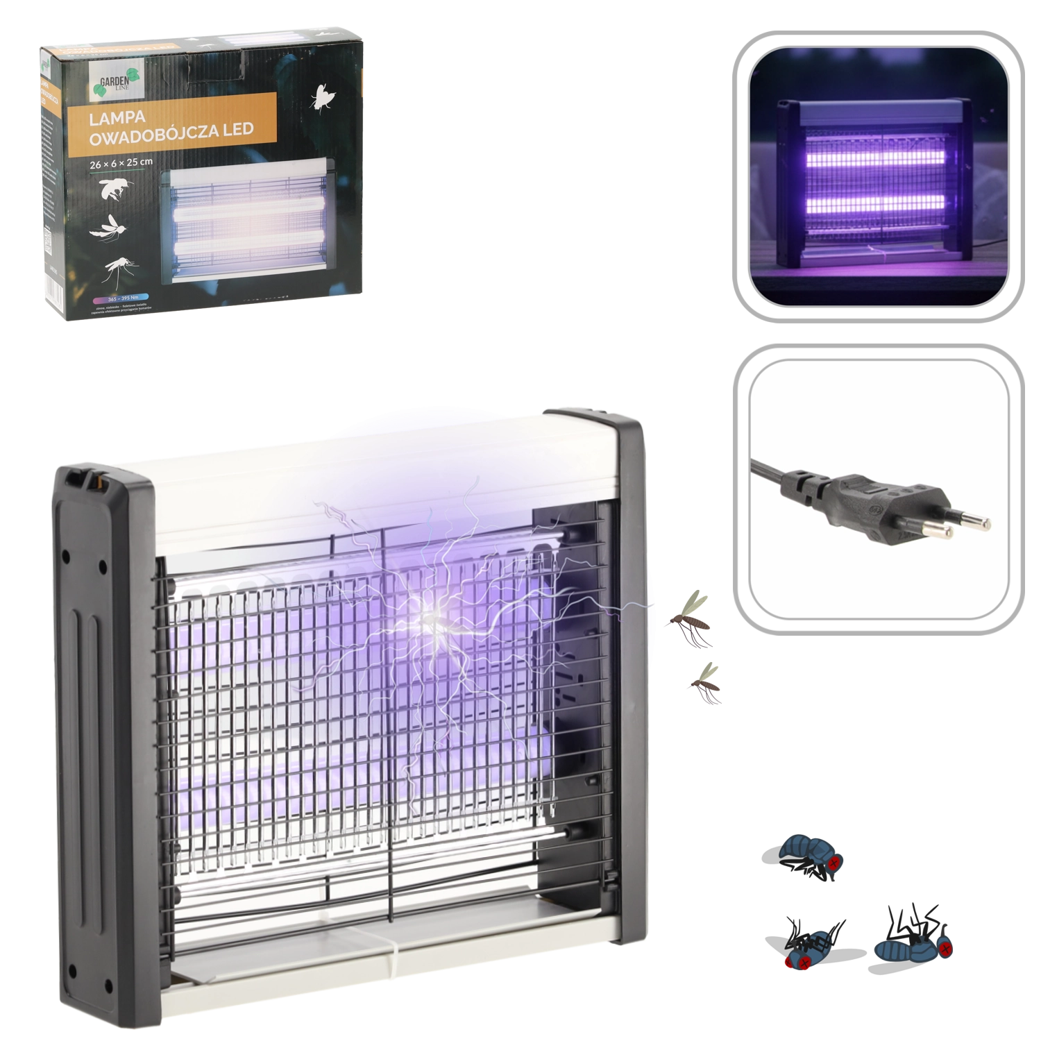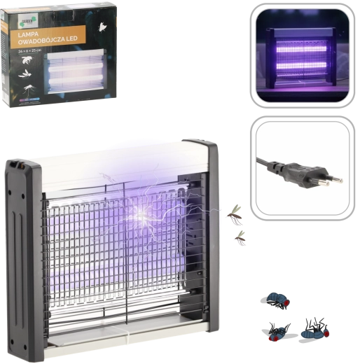 Osłonna siatka i pojemnik na zebrane owady ułatwiają konserwację i zwiększają bezpieczeństwo podczas codziennego użytkowania.