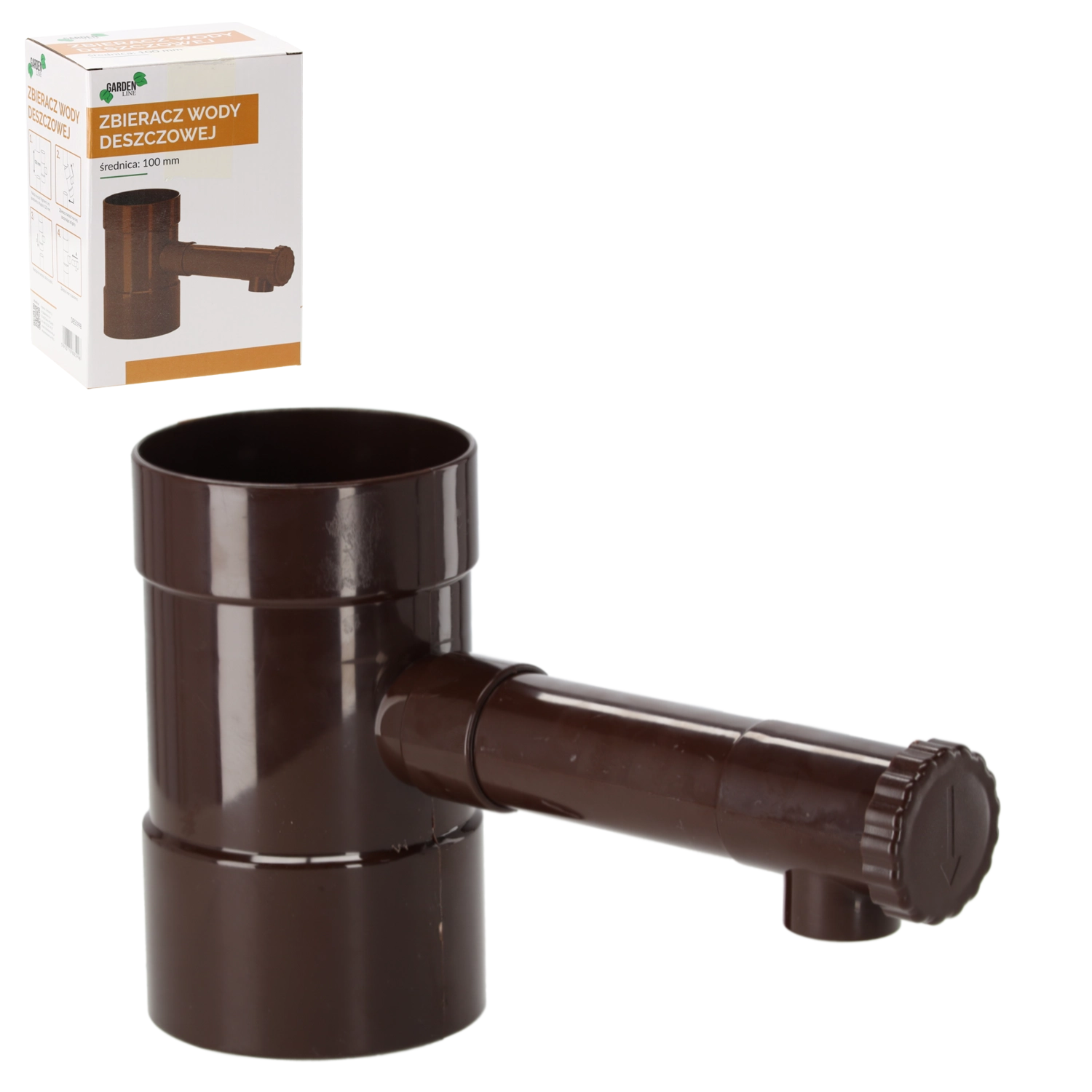 Zbieraj deszczówkę prosto ze spustu, oszczędzając koszty i środowisko. Brązowy zbieracz o średnicy 100 mm z wytrzymałego plastiku ABS łatwo montuje się na pionowej rurze spustowej i niezawodnie doprowadza wodę do beczki lub zbiornika do podlewania ogrodu.