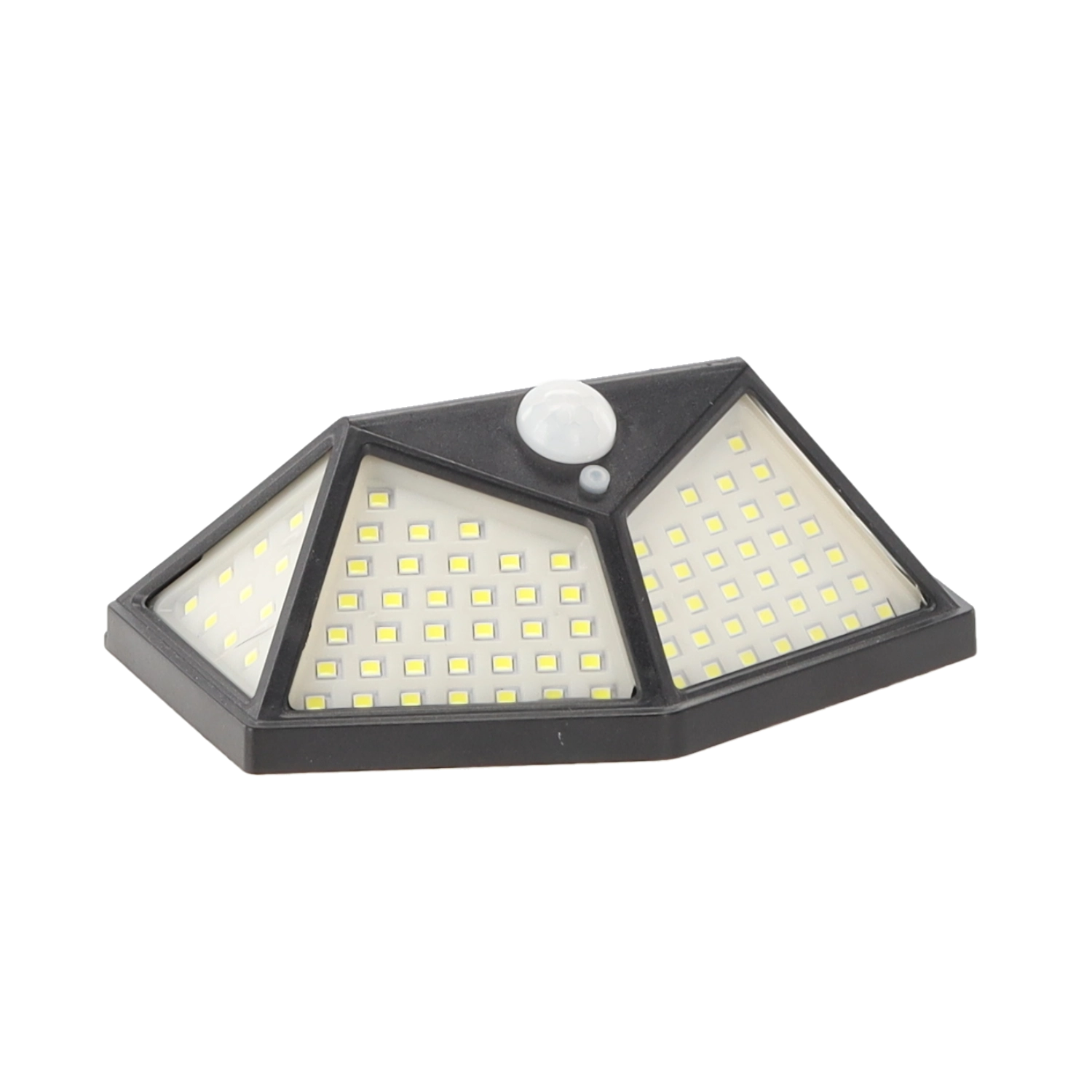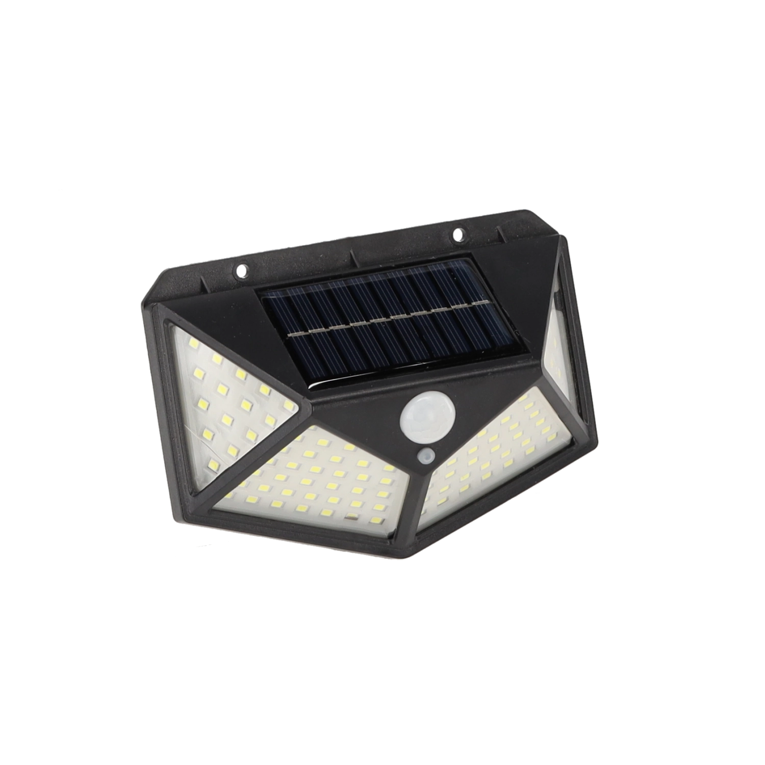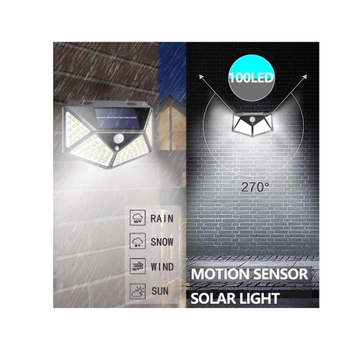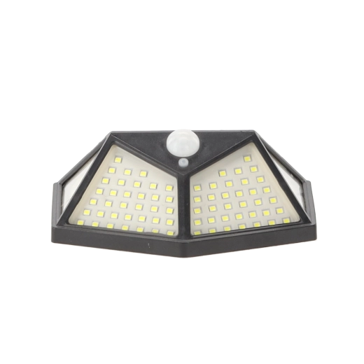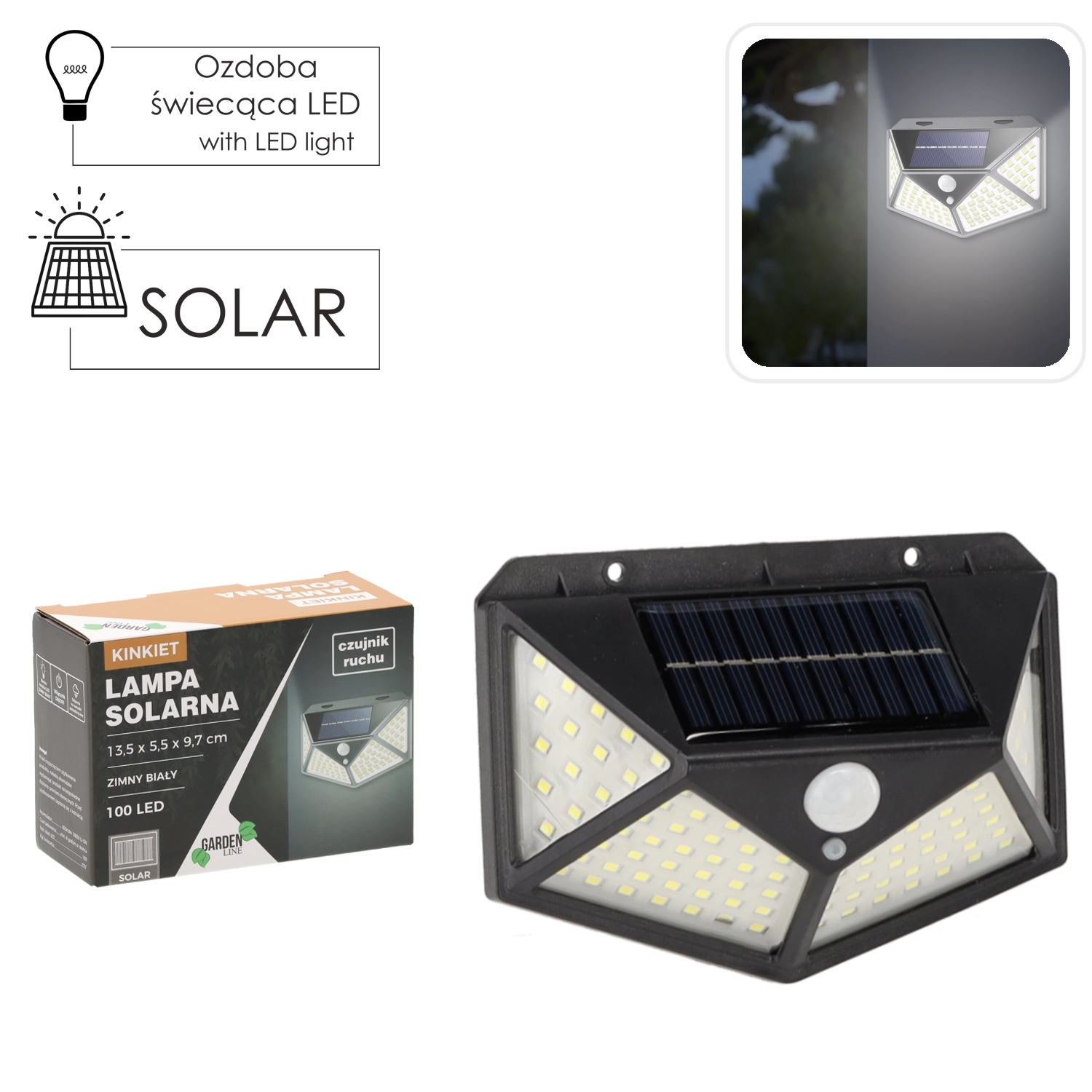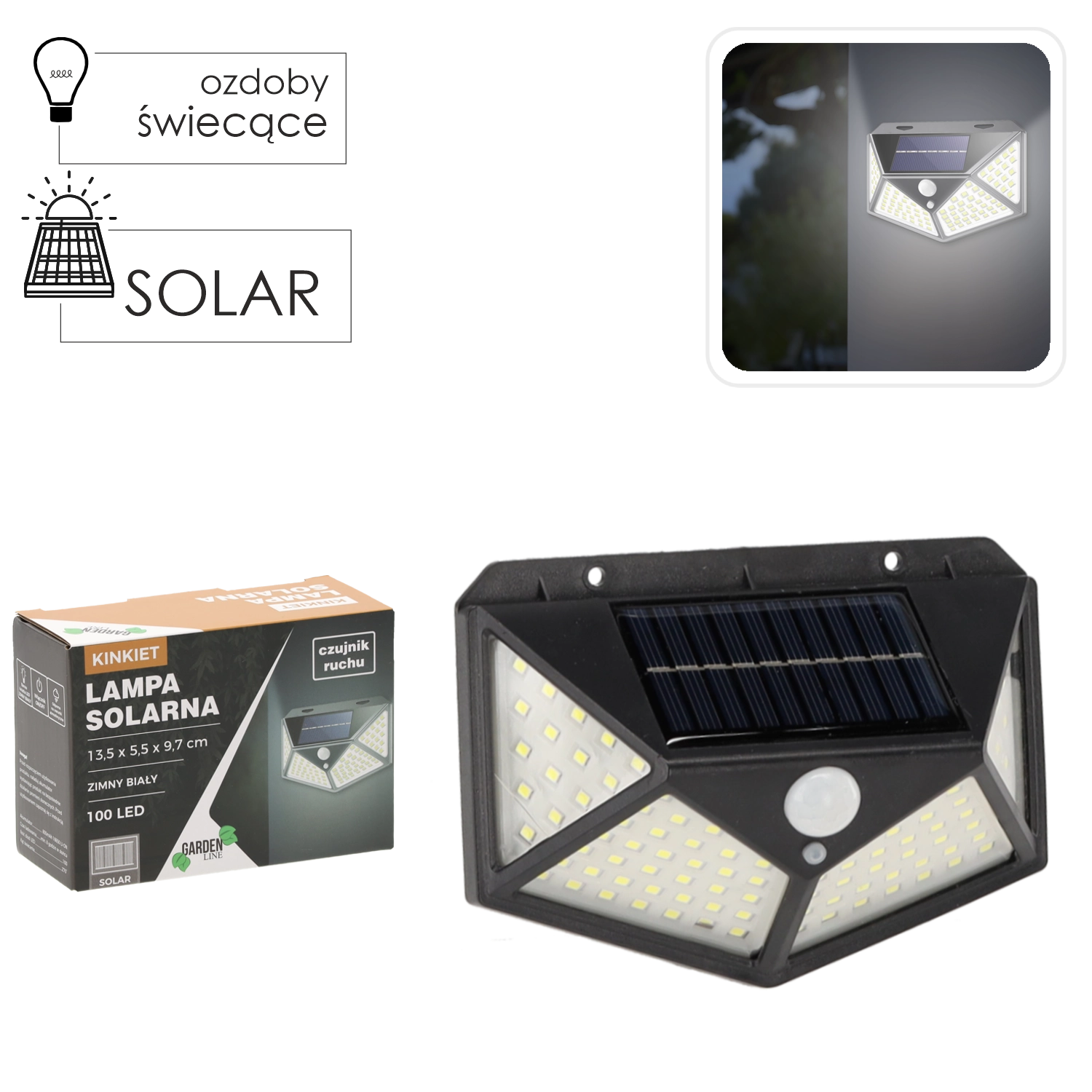 Praktyczne oświetlenie zewnętrzne z ładowaniem solarnym zapewnia szerokokątne doświetlenie dzięki gęstemu polu 100 diod LED. Zintegrowany czujnik PIR reaguje na ruch – światło włącza się po wykryciu i wyłącza przy braku aktywności, gwarantując bezpieczne przejście i oszczędność energii.