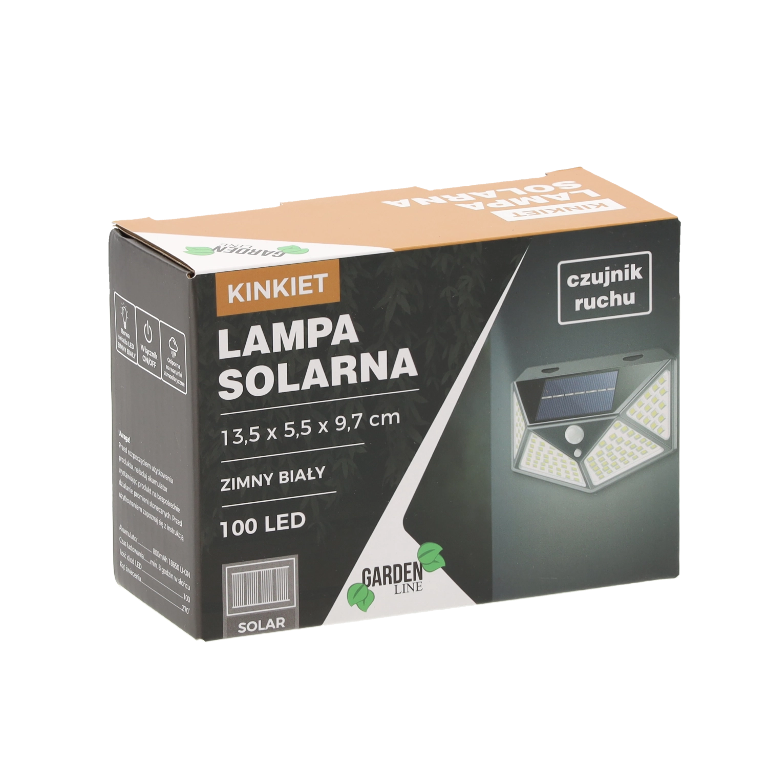 Gęste pole 100 diod LED zapewnia mocny strumień świetlny o zimnobiałej barwie, idealny do bezpiecznego oświetlenia ścieżek, wejść i podwórek.