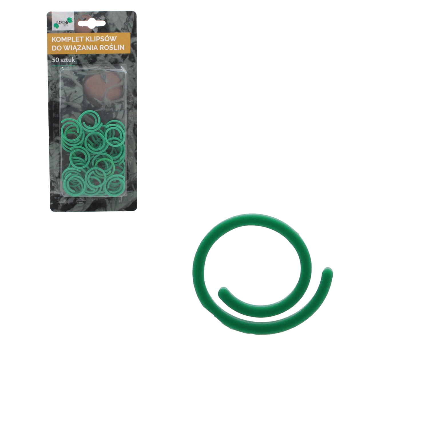 Praktyczny zestaw 50 klipsów do podwiązywania roślin zapewnia ich stabilny wzrost i bezpieczne mocowanie do palików lub krat. Klipsy z trwałego plastiku z szybkim i łatwym mocowaniem chronią łodygi przed uszkodzeniem przez wiatr i własny ciężar. Zielony kolor naturalnie wtapia się w roślinność i nie zaburza wyglądu ogrodu.