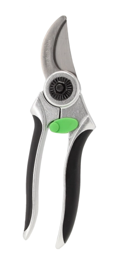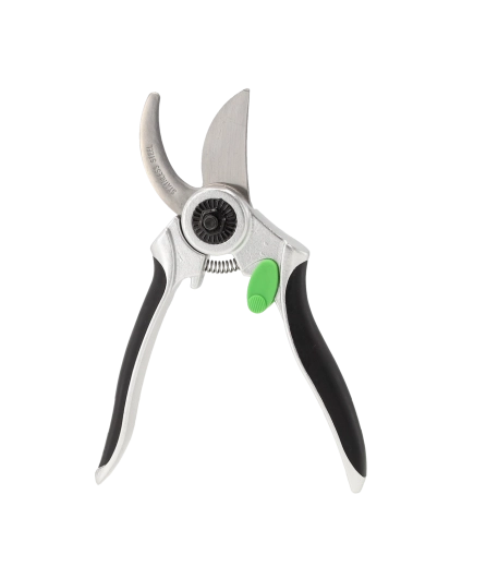 Ergonomiczny sekator bypass z blokadą bezpieczeństwa jest idealny do precyzyjnych cięć łodyg i mniejszych gałązek. Teksturowane rękojeści zapewniają pewny chwyt.