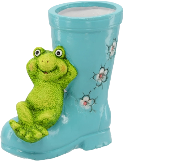 Ta designerska doniczka w formie kalosza z żabą z łatwością ożywi każdy kąt. Jest idealna na zioła, sukulenty oraz drobne kwiaty, a dzięki kompaktowym wymiarom ustawisz ją na parapecie, schodach, stoliku na tarasie lub balustradzie balkonu.