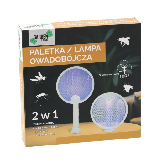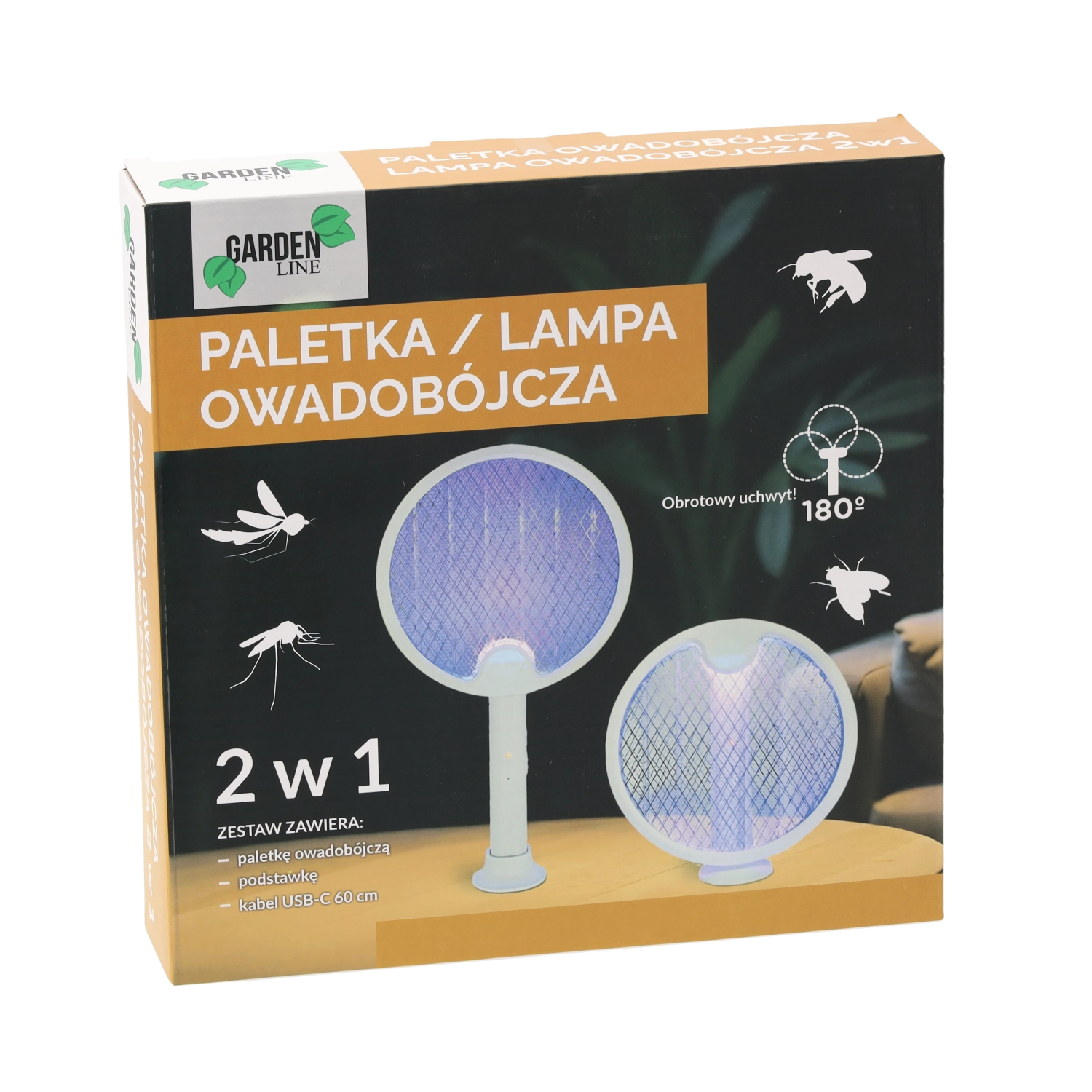 Praktyczna elektryczna packa na owady 2 w 1 działa jak klasyczna ręczna „rakieta” oraz jako stojąca lampa odstraszająca owady. Trzy UV LED (360–400 nm) skutecznie wabią komary i muchy, a wysokonapięciowa siatka natychmiast je eliminuje bez chemii. Ładowanie przez USB‑C, idealna do domu, na balkon, taras i w podróży.