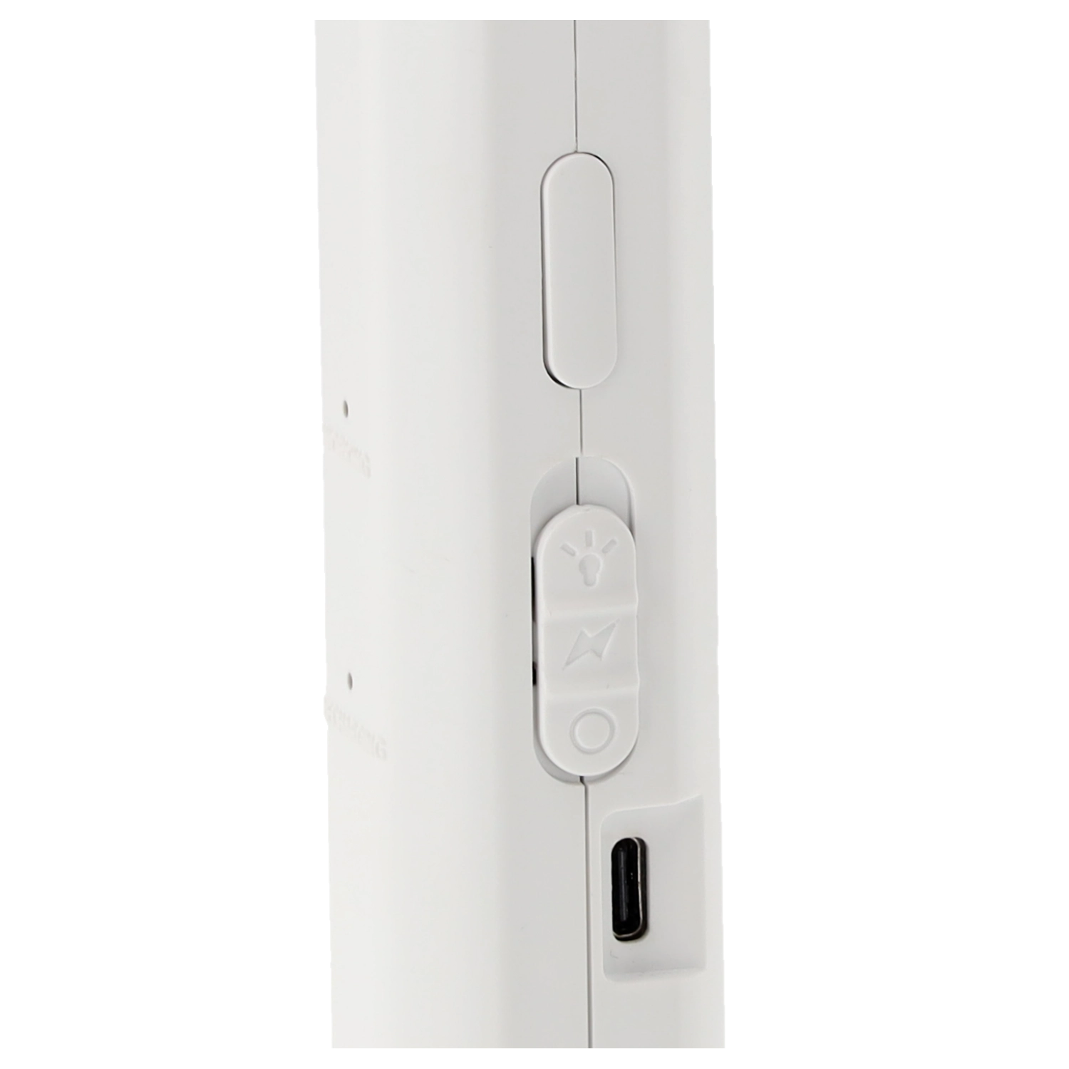 Dzięki zintegrowanemu akumulatorowi Li‑ion 800 mAh zapewnia do 5 godzin pracy, a ładowanie trwa około 2–3 godziny przez uniwersalne USB‑C. Wytrzymała obudowa z tworzywa HIPS jest lekka i wygodna w dłoni, a dołączony przewód ułatwia ładowanie w domu i w podróży.