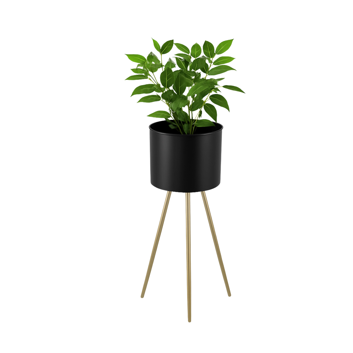 Stylowy stojak na kwiaty o wymiarach 18 × 18 × 50 cm w kolorze czarnym ze złotymi nogami jest idealny do nowoczesnych wnętrz. Oferuje stabilną metalową konstrukcję, elegancki minimalistyczny design oraz łatwą pielęgnację, dzięki czemu doskonale sprawdzi się w salonie, sypialni, biurze i na zadaszonym balkonie.