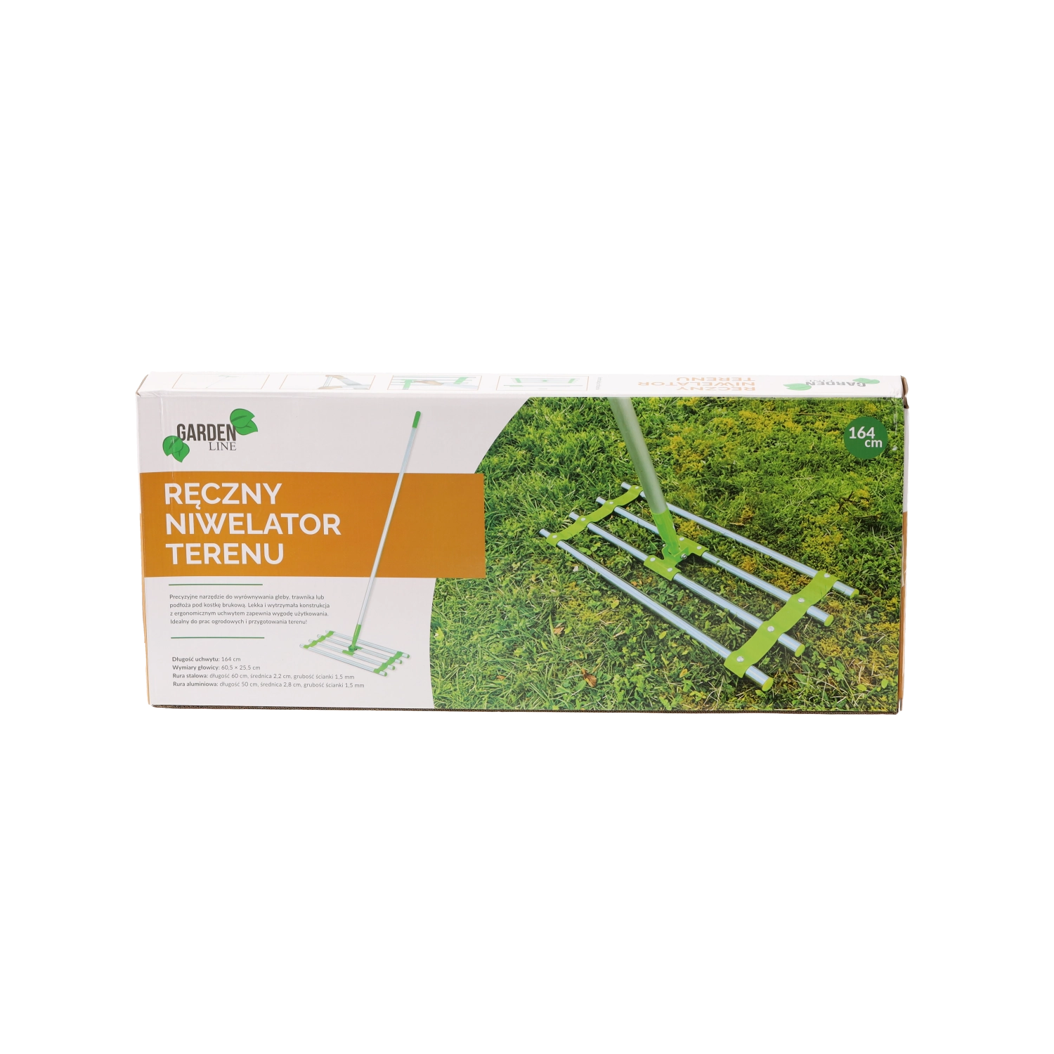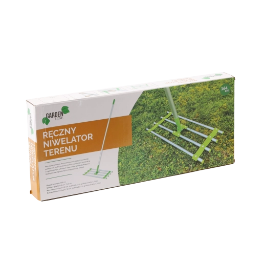 Praktyczny ręczny niwelator terenu o długości 164 cm do szybkiego i precyzyjnego wyrównywania ziemi, żwiru lub piasku. Oferuje solidną stalowo-aluminiową konstrukcję, szeroką głowicę dla równomiernego ściągania oraz wygodną obsługę nawet podczas dłuższej pracy.
