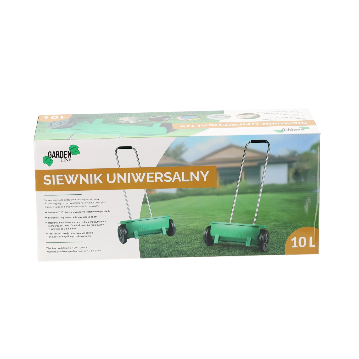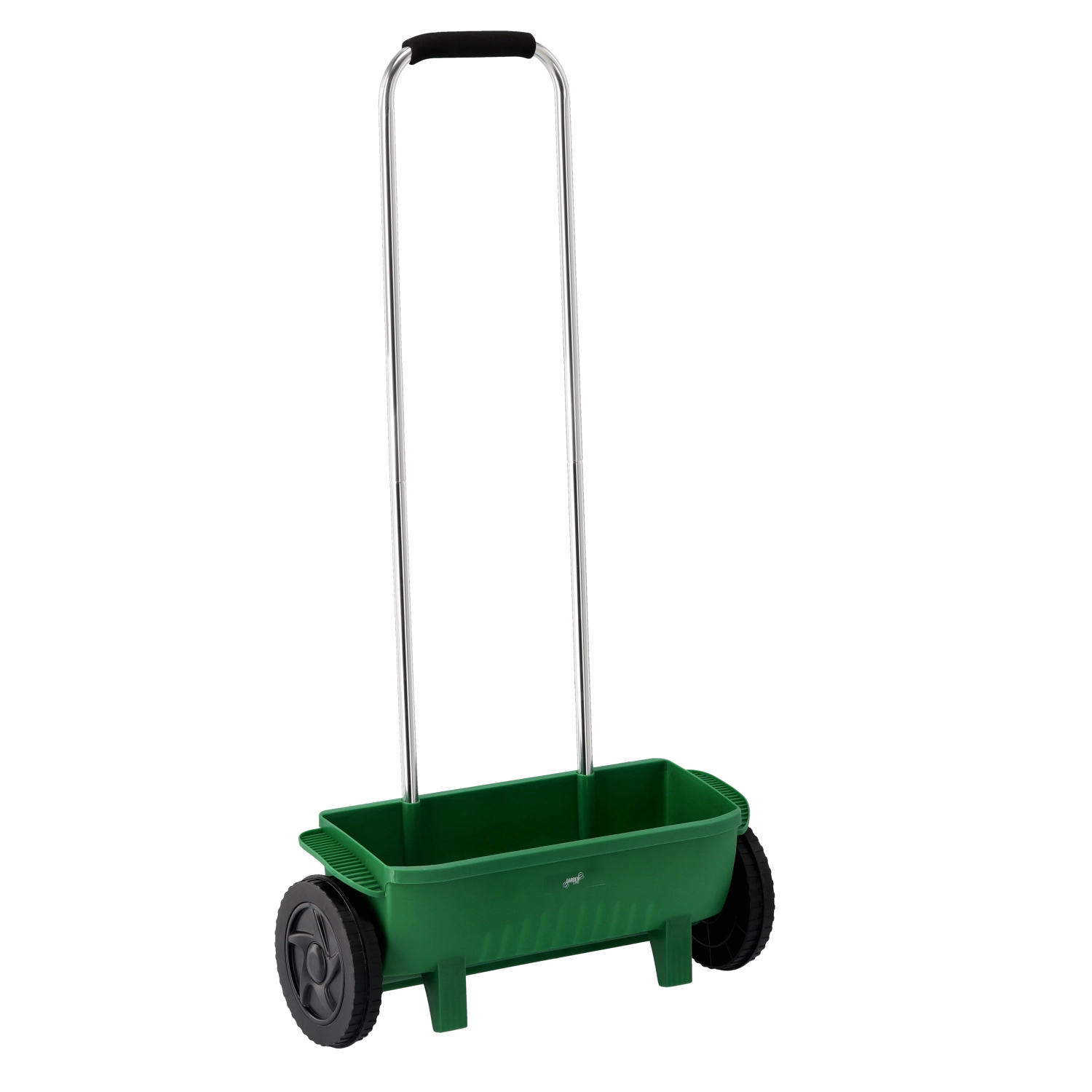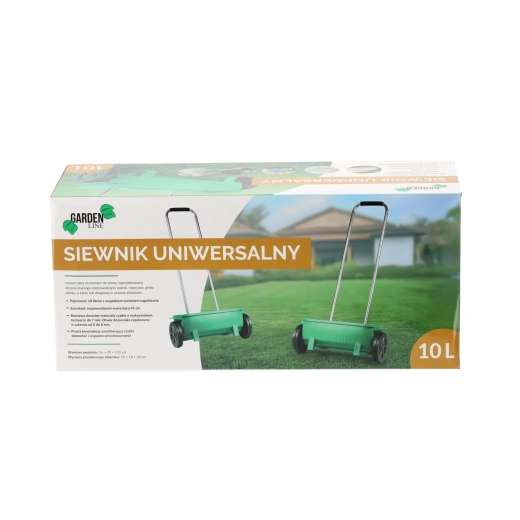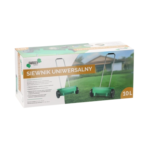 Praktyczny ogrodowy rozsiewacz do precyzyjnego i konsekwentnego rozsiewu na całej powierzchni trawnika oraz rabat. Duży zbiornik o pojemności 10 l z trwałym plastikowym koszem i solidnymi kołami zapewnia płynny ruch i stabilność, a ergonomiczny uchwyt gwarantuje wygodę nawet przy dłuższej pracy.