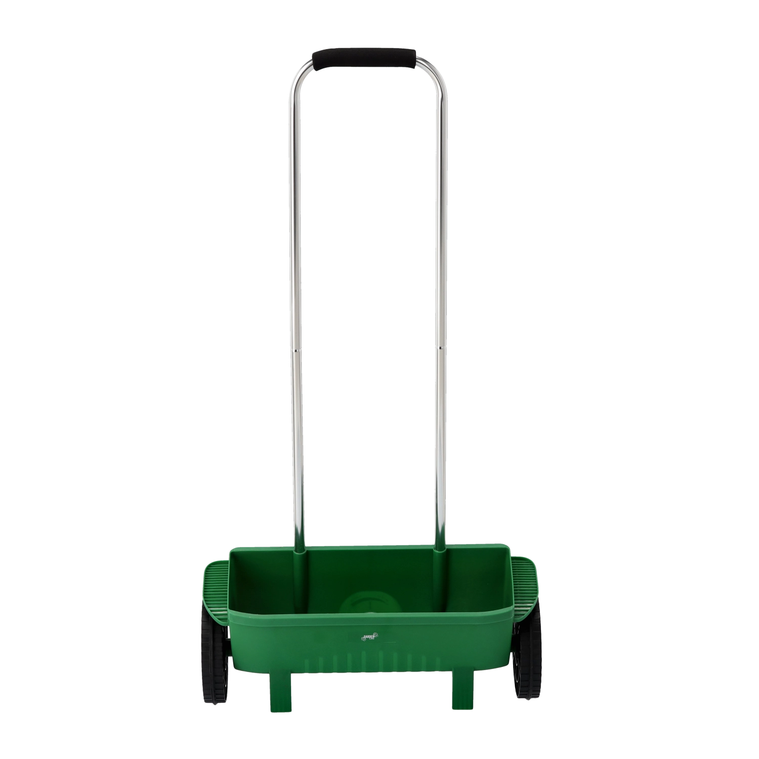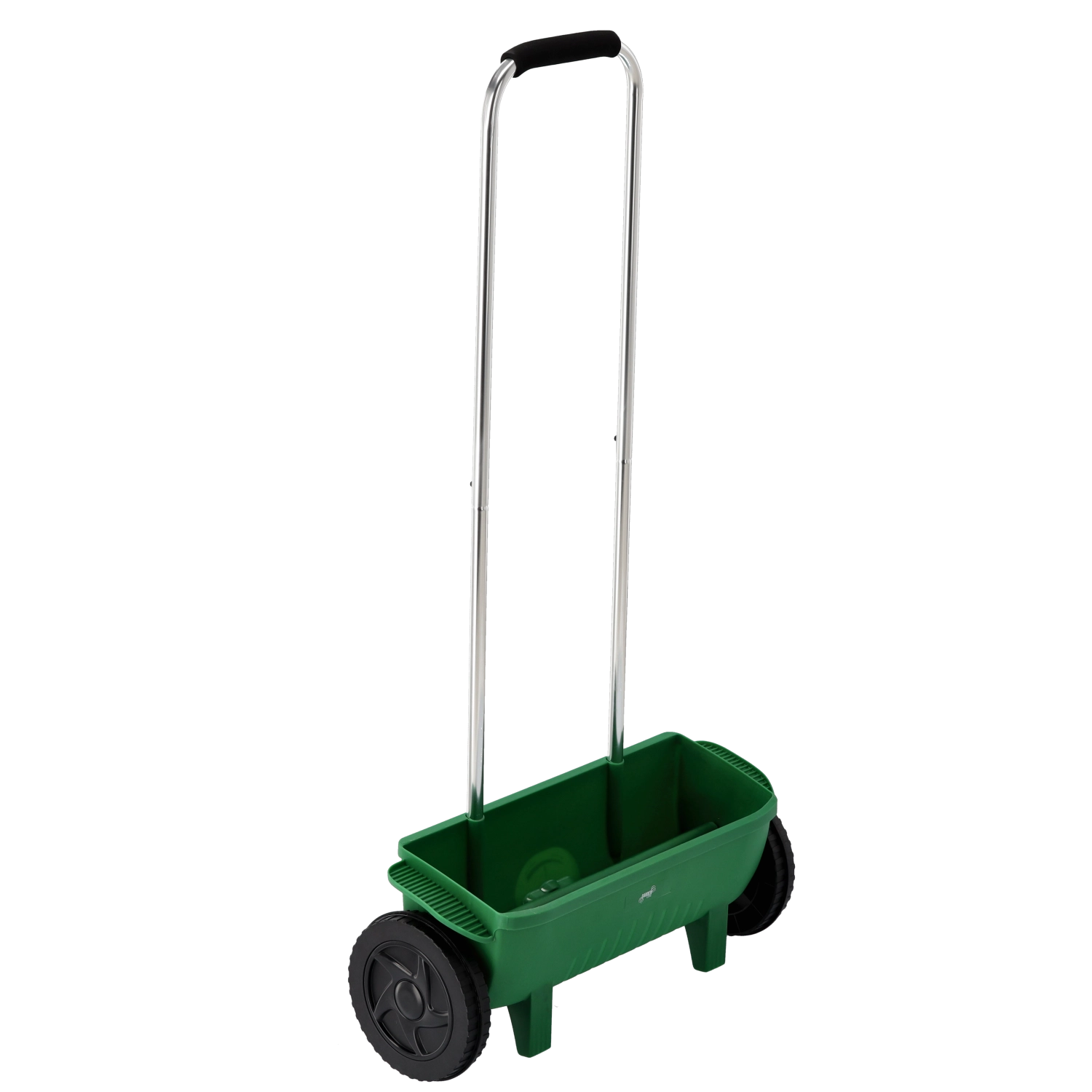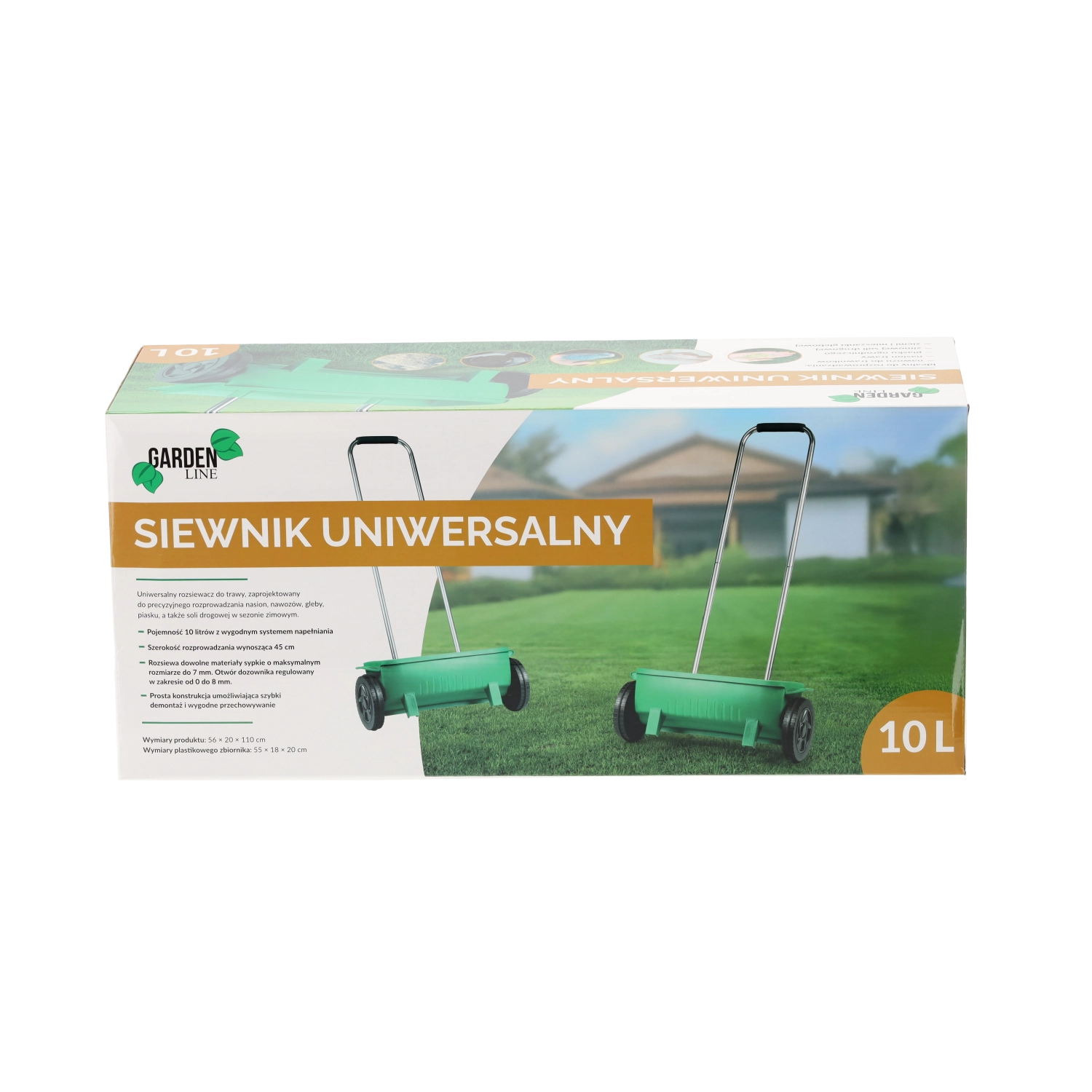 Praktyczny ogrodowy rozsiewacz do precyzyjnego i konsekwentnego rozsiewu na całej powierzchni trawnika oraz rabat. Duży zbiornik o pojemności 10 l z trwałym plastikowym koszem i solidnymi kołami zapewnia płynny ruch i stabilność, a ergonomiczny uchwyt gwarantuje wygodę nawet przy dłuższej pracy.