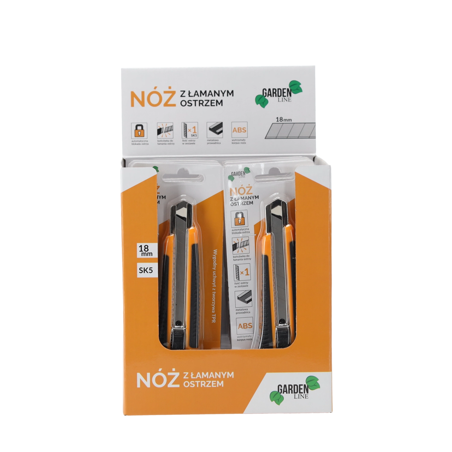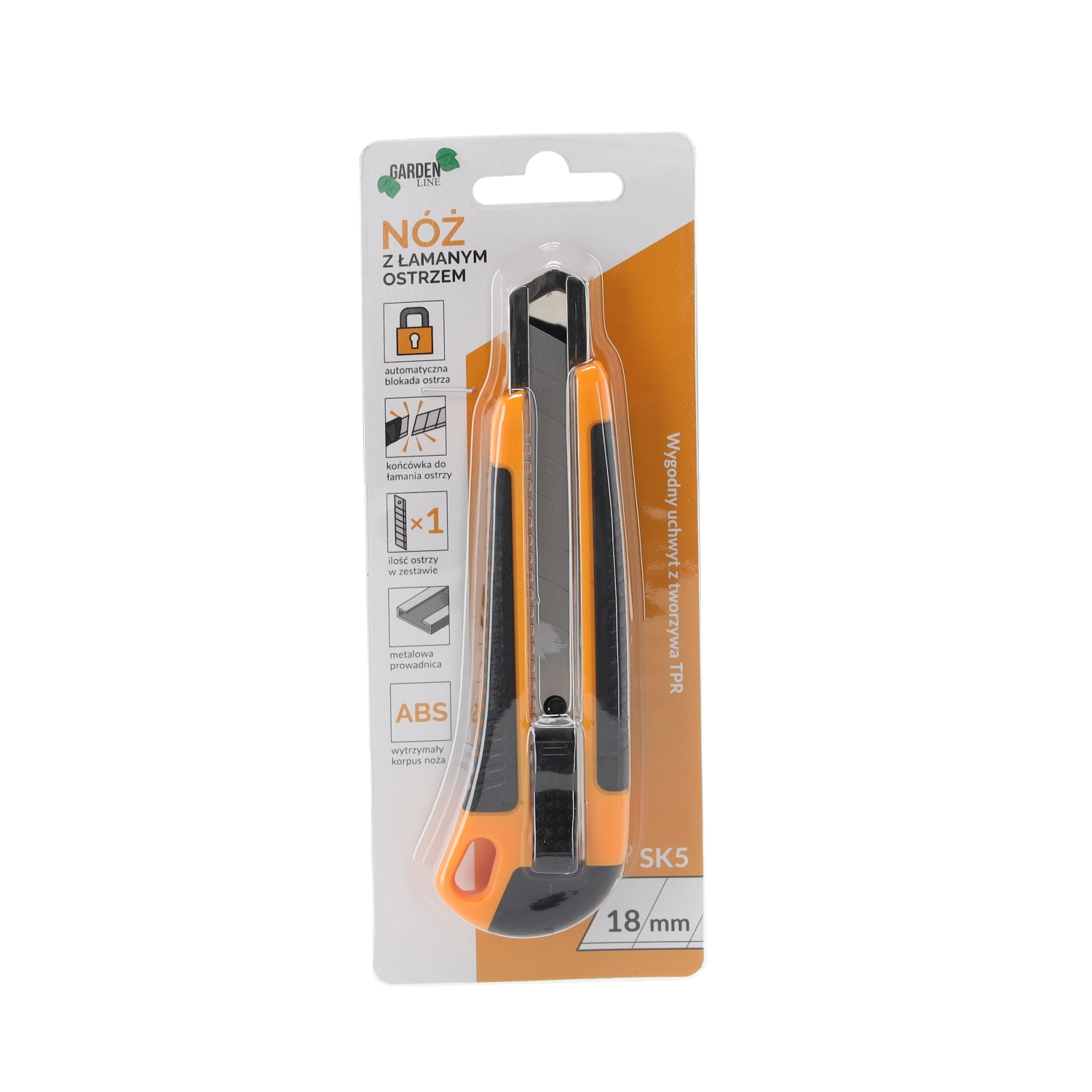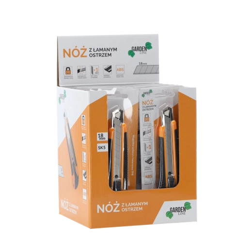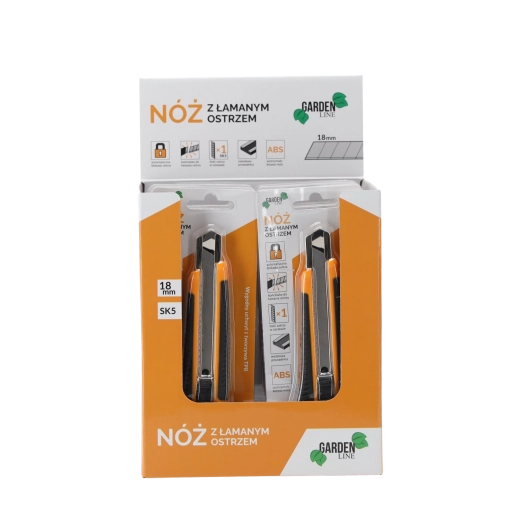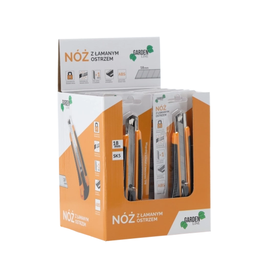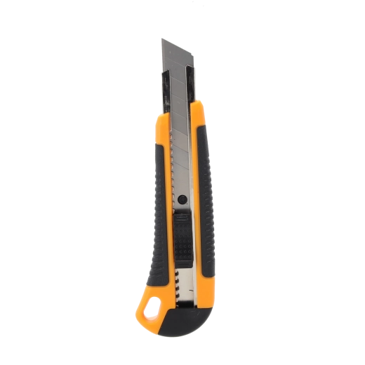 Niezawodny nóż z odłamywanym ostrzem 18 mm jest idealny do cięcia kartonu, folii, wykładzin czy tworzyw sztucznych. Wytrzymały korpus z ABS w połączeniu z antypoślizgowym uchwytem TPR zapewnia pewny chwyt i komfort podczas dłuższej pracy. Automatyczna aretacja unieruchamia ostrze w wybranej pozycji dla bezpiecznych i precyzyjnych cięć.