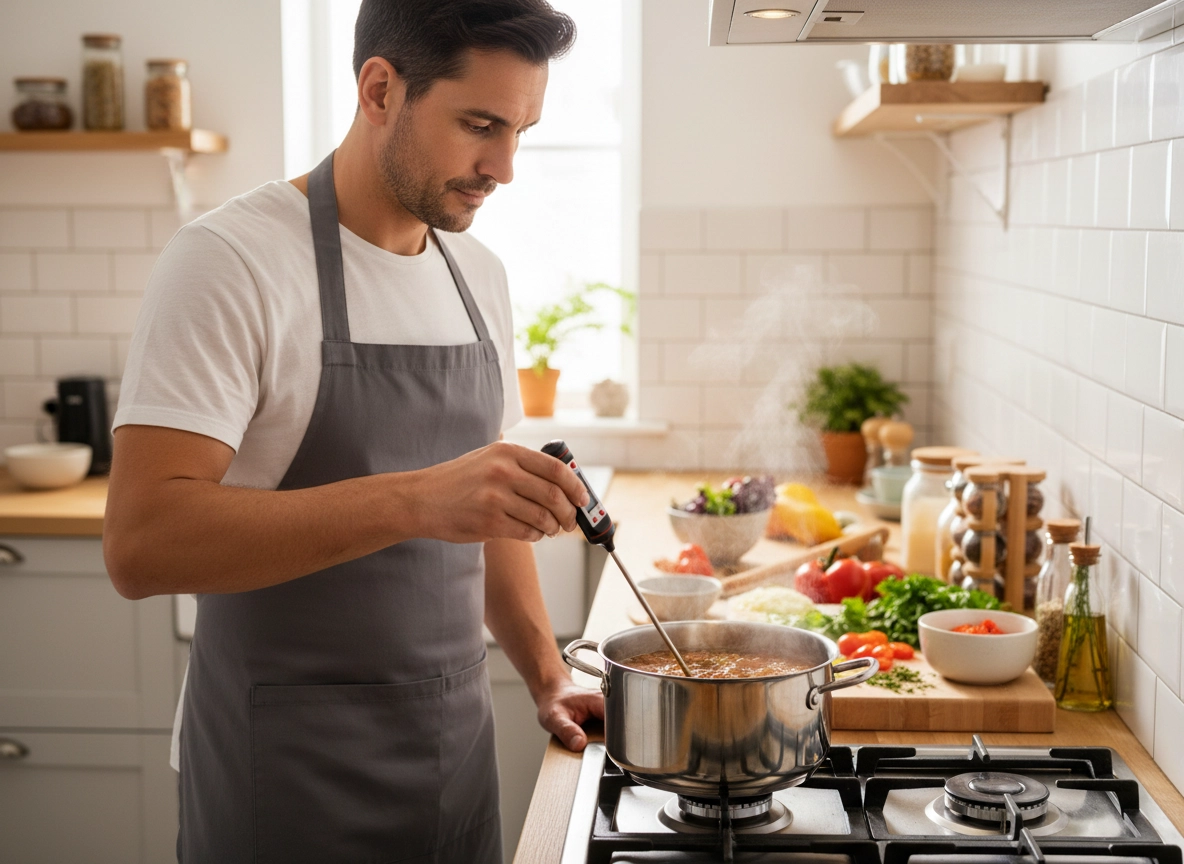 Lekka i kompaktowa konstrukcja łatwo się przechowuje i sprawdza na co dzień. Doskonały do bezpieczeństwa żywności, precyzyjnego gotowania sosów oraz kontroli temperatury wewnętrznej pieczeni.