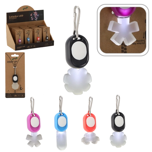 Doskonała jako oświetlenie awaryjne do korytarzy i namiotów, na wieczorne spacery oraz do codziennego użytku. W opakowaniu znajdują się baterie, więc latarka jest gotowa do użycia od razu po rozpakowaniu. Produkt dostarczany jest w miksie kolorów, co czyni go miłym drobnym prezentem lub praktycznym brelokiem.