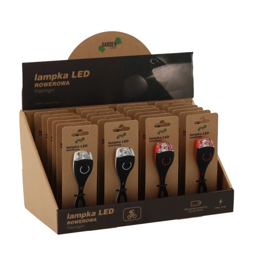 - Uniwersalne zastosowanie – biała lampka z przodu, czerwona z tyłu dla większego bezpieczeństwa.