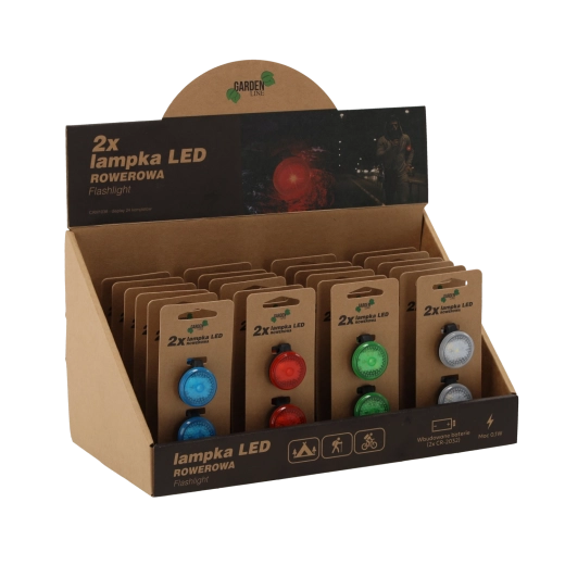 Możesz wybierać z miksu atrakcyjnych kolorów dla stylu i funkcjonalności – białe światło dla widoczności z przodu i czerwone z tyłu, uzupełnione wariantami w kolorze niebieskim i zielonym dla lepszego rozróżnienia wyposażenia. Kompaktowy kształt i elastyczne mocowanie gwarantują szybki montaż bez narzędzi.