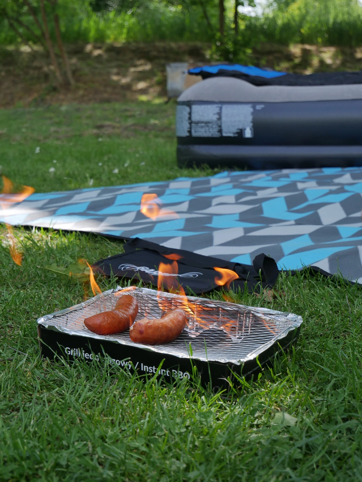 Kompaktowy jednorazowy grill mieści się w plecaku i jest idealny na piknik, kemping czy wypad do parku.