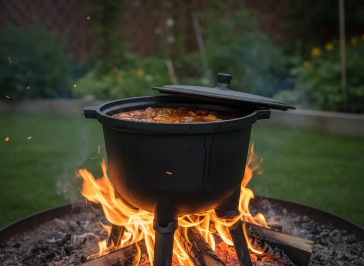 Solidny żelazny kociołek o pojemności 5 l jest idealny do gotowania na łonie natury – na ogniu, grillu i w polowej kuchni. Równomierne rozprowadzanie ciepła, długa akumulacja ciepła oraz stabilna trójnoga zapewniają wygodne duszenie gulaszy, zup i sosów dla całej rodziny.