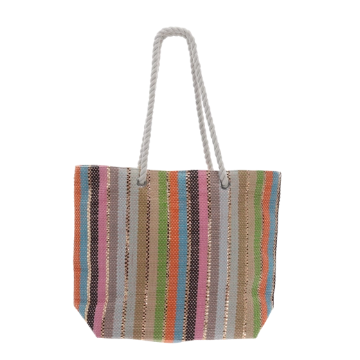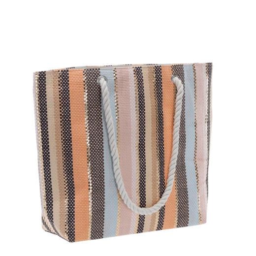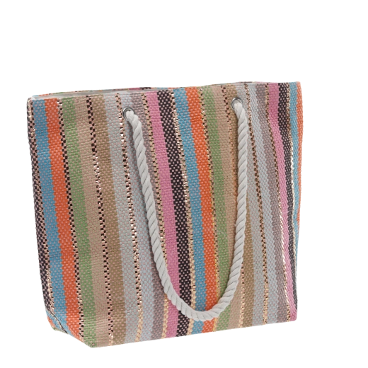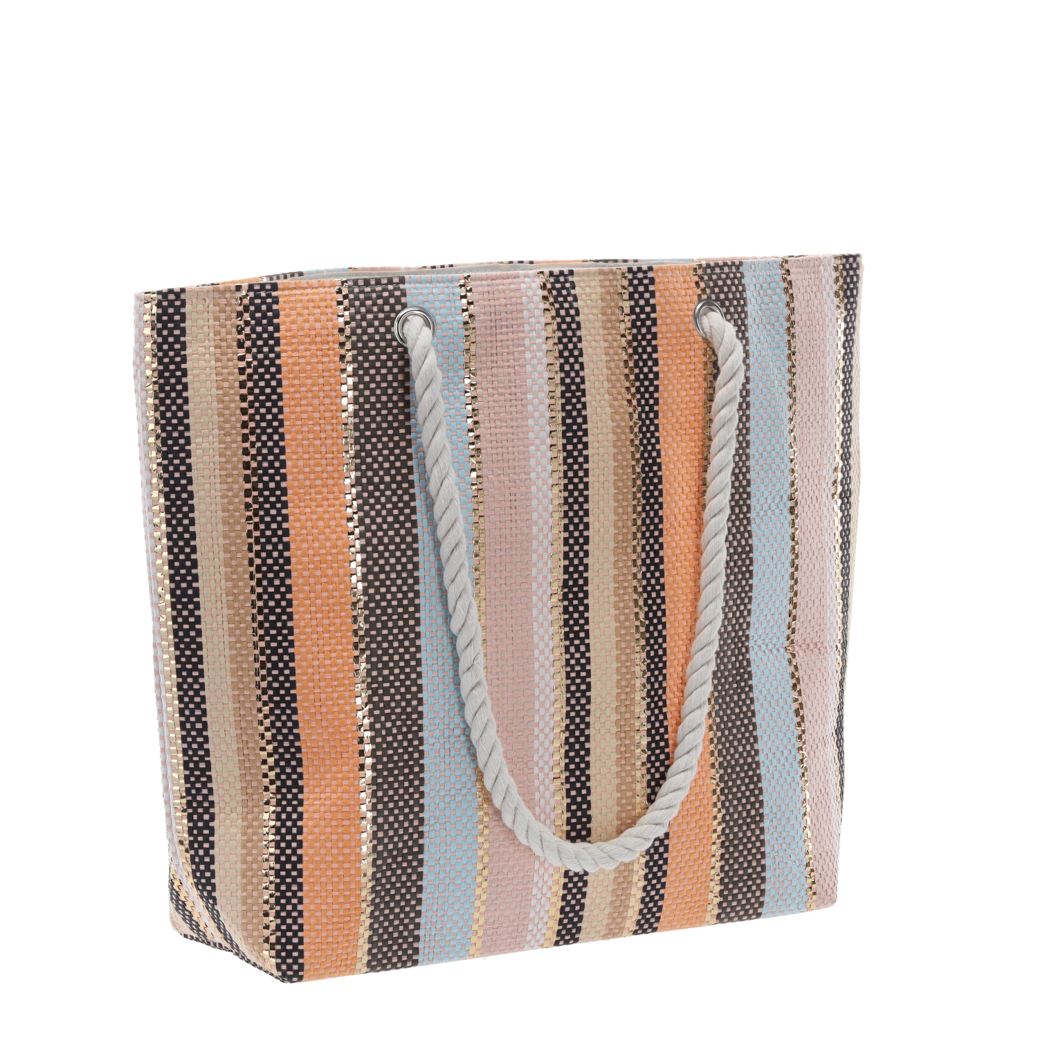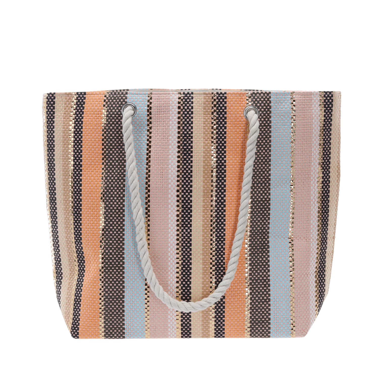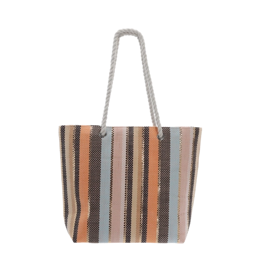 Ta przestronna plażowa torba wyróżnia się świeżym, pasiastym designem i wygodnymi, linowymi uchwytami do noszenia na ramieniu. Otwarty górny dostęp umożliwia szybkie sięganie po rzeczy, a sztywniejsze tekstylne korpus utrzymuje kształt i lekkość podczas całodziennego użytkowania.