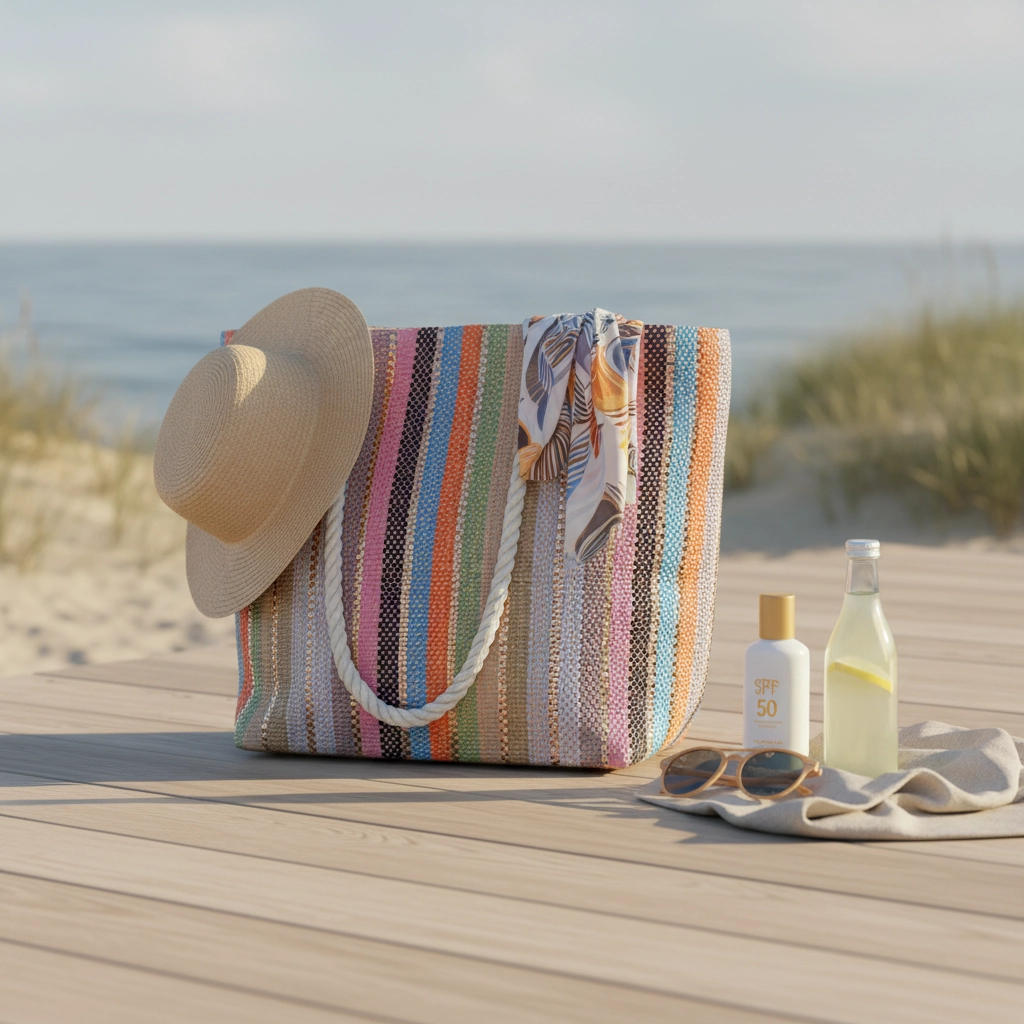 Świetnie sprawdzi się na plaży, przy basenie i w mieście. Z łatwością schowasz w niej ręczniki, ubrania, krem do opalania oraz drobne akcesoria. Torba jest lekka i przewiewna, a jednocześnie wystarczająco pojemna do codziennego noszenia.